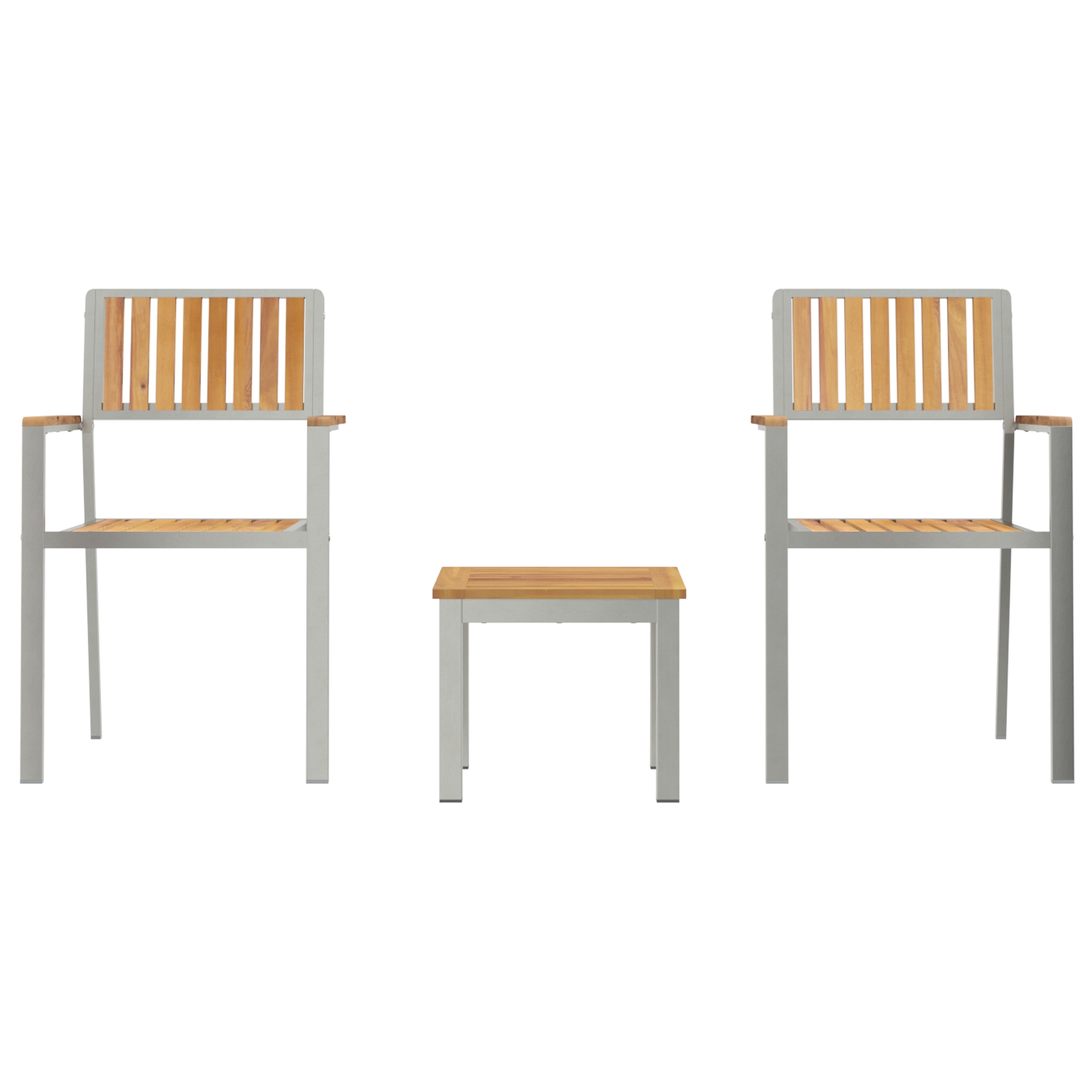 Dieses Esszimmer-Set für draußen verbindet Stil und Praktikabilität. Es bietet zwei robuste Teakholzstühle und einen kompakten Tisch. Genau das Richtige, um Mahlzeiten auf deinem Balkon oder Patio zu teilen. Die Kombination aus massivem Teakholz und pulverbeschichtetem Stahl schafft eine warme Atmosphäre und sorgt für Langlebigkeit, wodurch es ideal für Sommerabende mit Familie und Freunden ist. Langlebige Bauweise: Robuste Konstruktion aus massivem Teakholz und pulverbeschichtetem Stahl, dieses Esszimmer-Set ist bereit für die Outdoor-Bedingungen und garantiert dir langfristigen Spaß für viele Jahre. Bequeme Sitzmöglichkeiten: Jeder Stuhl hat flache Armlehnen für zusätzlichen Komfort, damit du beim Essen entspannt bleiben kannst, egal ob du schlemmt oder einfach die frische Luft genießt. Stylishes Design: Das moderne Design des Sets passt zu jeder Gartengestaltung und schafft eine einladende Atmosphäre, die dein Outdoor-Erlebnis aufwertet. Wetterfest: Mit UV- und wasserresistenten Materialien wurde dieses Esszimmer-Set designed, um dem Wetter standzuhalten und dabei pflegeleicht auszusehen. Kompaktes Design: Dank des platzsparenden Tisches ist dieses Set ideal für Balkone und kleine Patios. So kannst du das Essen im Freien genießen, ohne zu viel Platz zu brauchen.