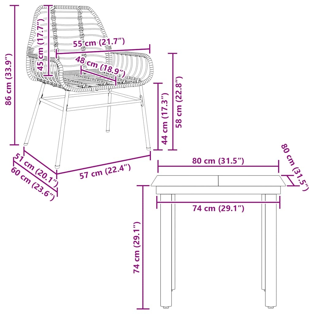 - Abmessungen: 80 x 80 x 74 cm (L x B x H)