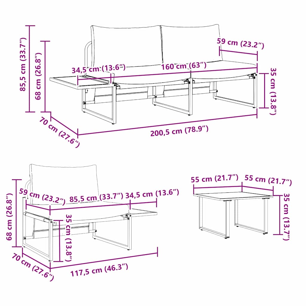 - Lieferumfang: 1 x Tisch, 1 x 2-Sitzer Sofa, 1 x Sessel