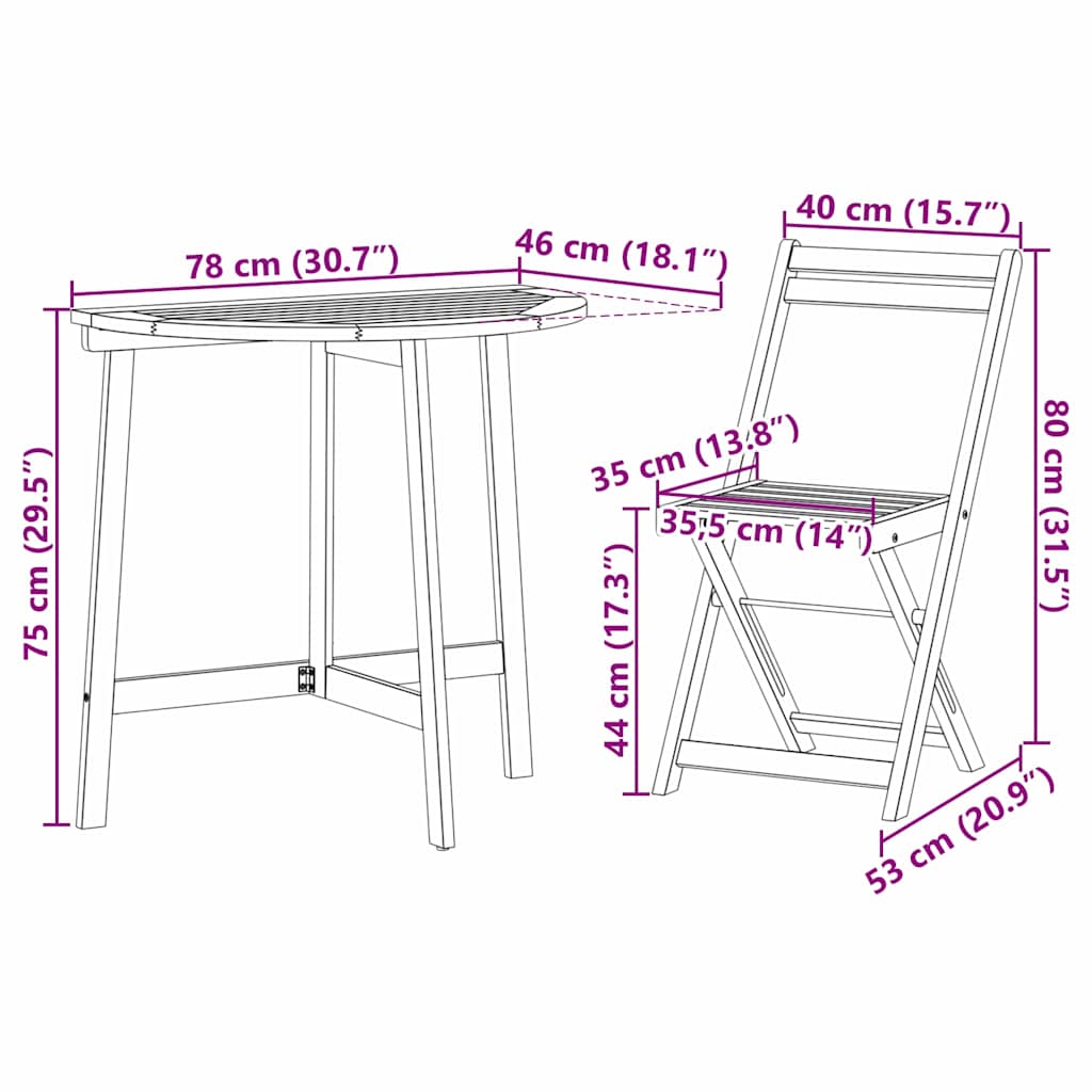 Dieses Klapp Bistro Set hat ein modernes Design, das prima in verschiedene Außenbereiche passt. Perfekt für Balkone, kombiniert es stilvolle Optik mit Funktionalität und schafft einen tollen Platz zum Essen oder Entspannen draußen. Stylisches Design: Die glatten Linien und das Finish aus Naturholz schaffen eine einladende Atmosphäre. Perfekt, um mit Freunden abzuhängen oder intime Mahlzeiten zu genießen. Dieses Bistro Set hebt jeden Außenbereich auf ein neues Level. Kompakte Aufbewahrung: Die Stühle klappst du ganz einfach zusammen, was die Lagerung bei Nichtgebrauch super macht. Besonders praktisch für kleinere Außenflächen, bietet es dir mehr Flexibilität. Qualitätsmaterialien: Aus solidem Akazienholz gemacht, ist dieses Set langlebig und hält den Bedingungen im Freien stand. Bequeme Sitzgelegenheit: Jeder Stuhl kommt ohne Kissen und hat einen schlichten Look, bleibt dabei aber perfekt für das Essen im Freien. Einfach zu pflegen: Dank der wasserabweisenden Oberfläche musst du nicht viel Aufwand in die Pflege investieren. Einfach mit einem feuchten Tuch abwischen, um es frisch zu halten und mehr Zeit zum Genießen zu haben.