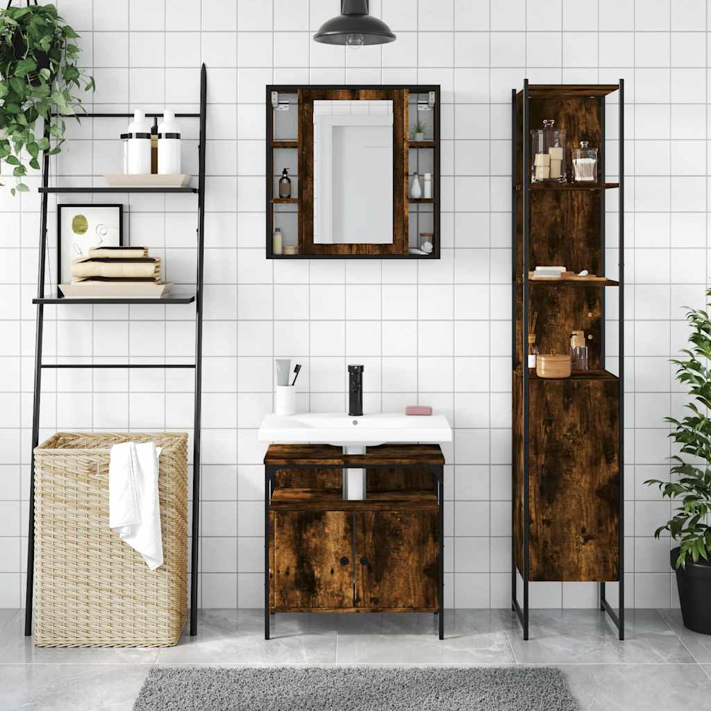 3-tlg. Badmöbel-Set Räuchereiche Holzwerkstoff