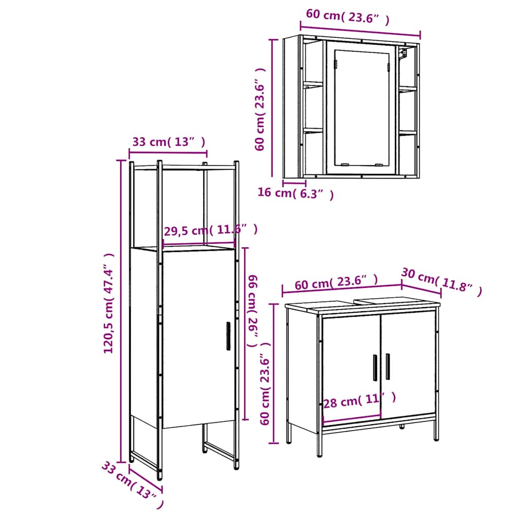- Abmessungen Waschbeckenunterschrank: 60 x 30 x 60 cm (L x B x H)