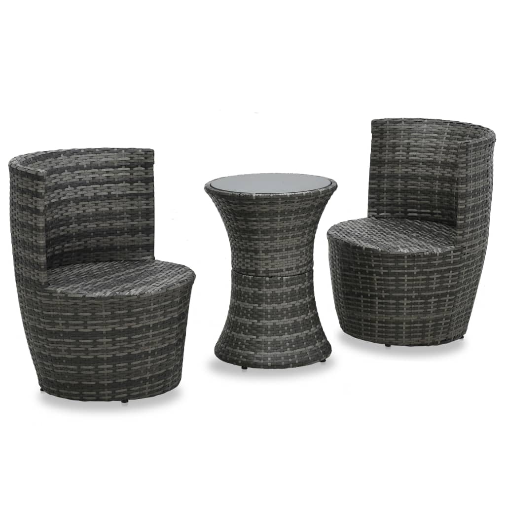 3-tlg. Bistro-Set mit Auflagen Poly Rattan Grau