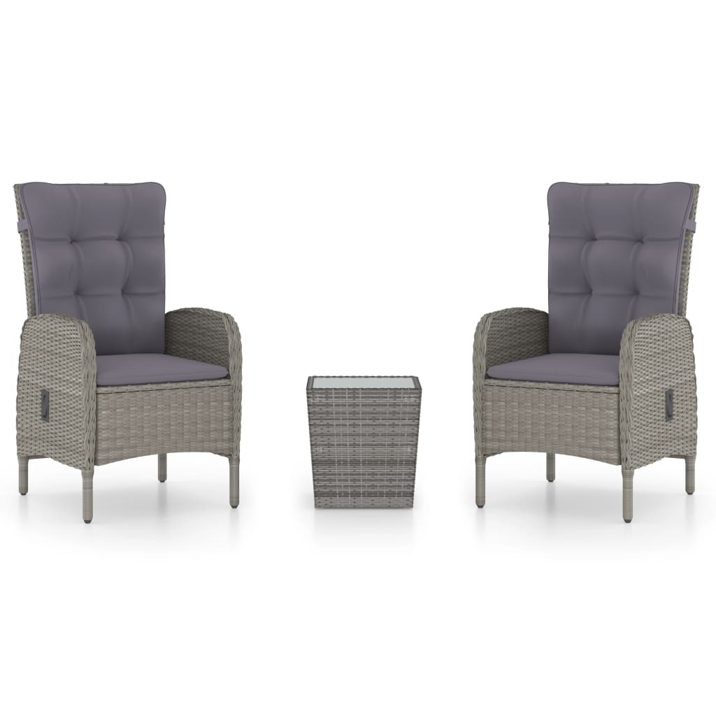 3-tlg. Bistro-Set Poly Rattan und Glas Grau