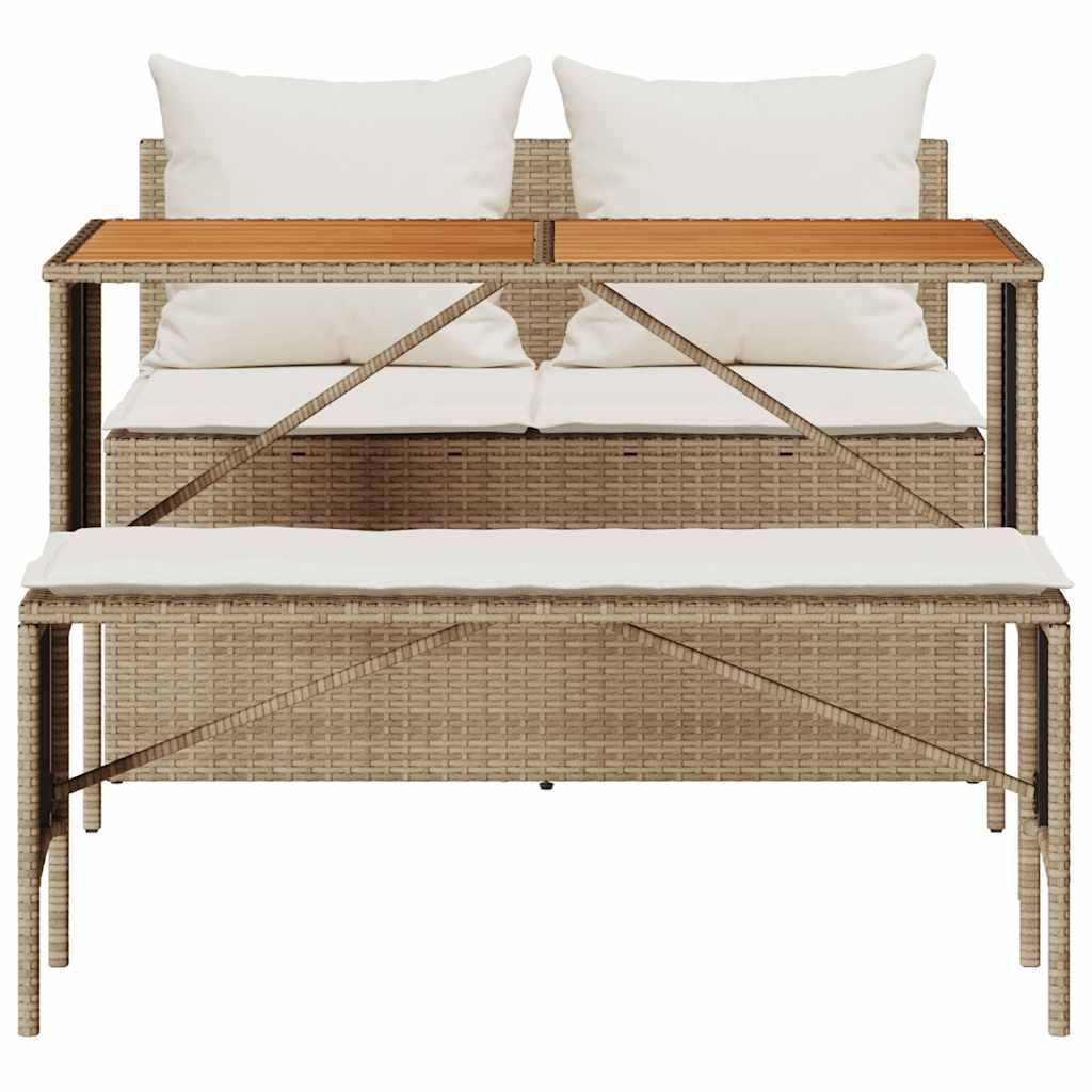 Diese Garten-Essgruppe ist eine ideale Wahl für Mahlzeiten im Freien oder einfach nur zum Entspannen im Garten, Hinterhof oder auf der Terrasse. Langlebiges Material: PE-Rattan, auch als Poly Rattan bekannt, ist ein robustes, pflegeleichtes synthetisches Material, das die Optik von natürlichem Rattan aufweist. Es kennzeichnet sich durch ein geringes Eigengewicht und lässt sich einfach reinigen. Aufgrund seiner Haltbarkeit und Witterungsbeständigkeit wird es häufig bei der Herstellung von Gartenmöbeln verwendet.Stabile und pflegeleichte Tischplatte: Dieser Gartentisch besitzt eine Tischplatte aus Akazienholz, die robust und langlebig ist und sich leicht mit einem feuchten Tuch reinigen lässt.Bequemes Sitzerlebnis: Dieser Gartensessel mit dick gepolsterten Kissen bietet ein angenehmes Sitzgefühl.Abnehmbarer und waschbarer Bezug: Diese Sitzkissen verfügen über abnehmbare Bezüge für einfaches Waschen und Pflegen.Robuster und stabiler Rahmen: Dank des pulverbeschichteten Stahlrahmens ist das Möbelstück robust, stabil und für den täglichen Einsatz im Außenbereich geeignet. Gut zu wissen:Wir empfehlen dir, deine Gartenmöbel mit einer wasserdichten Hülle zu schützen, um lange Zeit eine ansprechende Optik aufzuweisen.