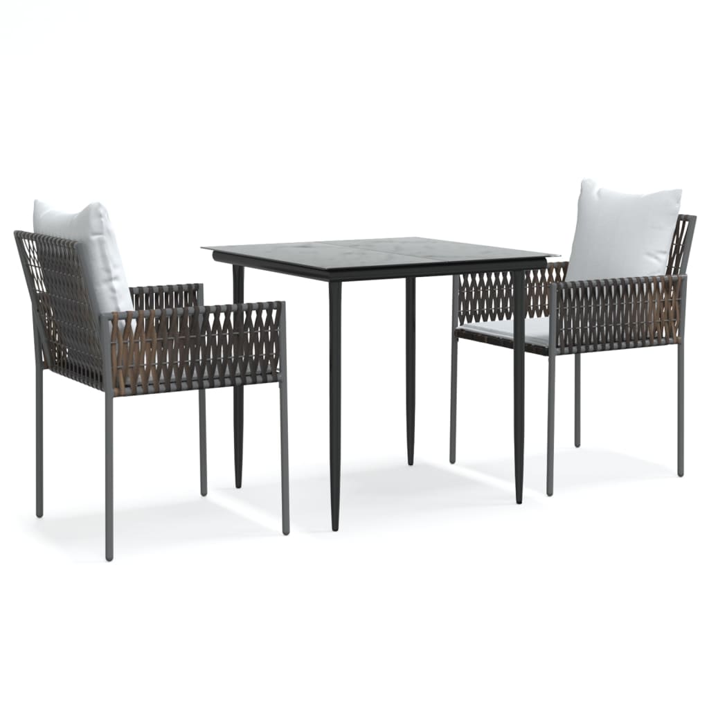 Entspannen Sie sich und genießen Sie einen schönen Nachmittagstee oder eine Mahlzeit mit Ihrer Familie und Freunden rund um dieser Garten-Essgruppe! Langlebiges Material: PE-Rattan, auch als Poly Rattan bekannt, ist witterungsbeständig und pflegeleicht. Seine Oberfläche weist lange Zeit eine ansprechende Optik auf. Es bietet hohe Qualität, Komfort und einen ästhetisches Look.Robuster und stabiler Rahmen: Dank der Stahlrahmen ist die Essgruppe robust, stabil und für den täglichen Einsatz im Freien geeignet.Praktische Tischplatte: Die glatte Tischplatte besteht aus Hartglas, das sich leicht mit einem feuchten Tuch reinigen lässt. Zudem bietet sie den idealen Platz für Speisen, Getränke oder einige dekorative Gegenstände.Bequeme Sitzgelegenheit: Der Essstuhl ist mit einer Rückenlehne und Armlehnen versehen, um höchsten Sitzkomfort zu bieten. Zum hohen Sitzkomfort tragen auch die dick gepolsterten Kissen bei. Hinweis:Damit deine Gartenmöbel lange schön bleiben, empfehlen wir dir, sie mit einer wasserdichten Hülle zu schützen.