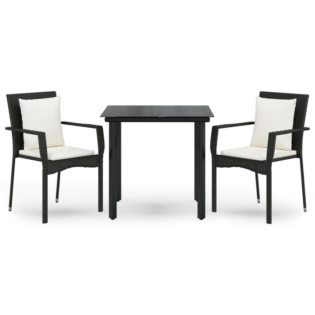3-tlg. Garten-Essgruppe mit Kissen Schwarz Poly Rattan