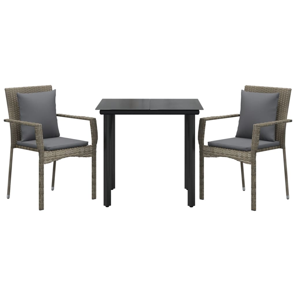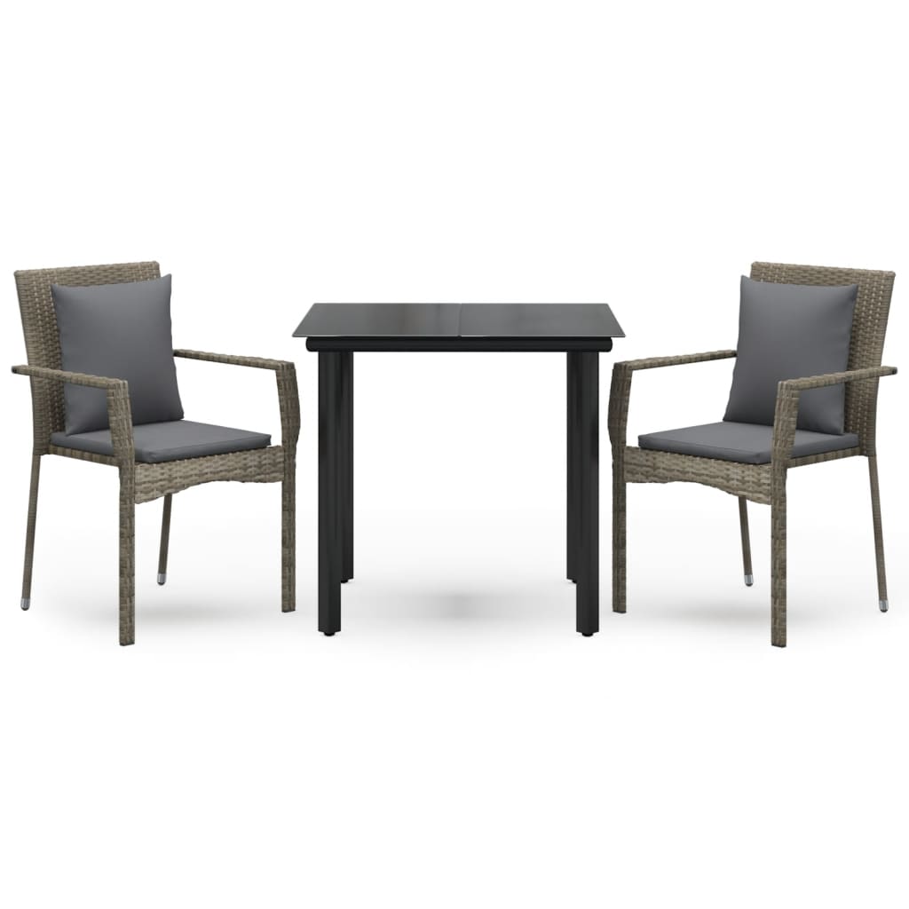 3-tlg. Garten-Essgruppe mit Kissen Schwarz und Grau Poly Rattan
