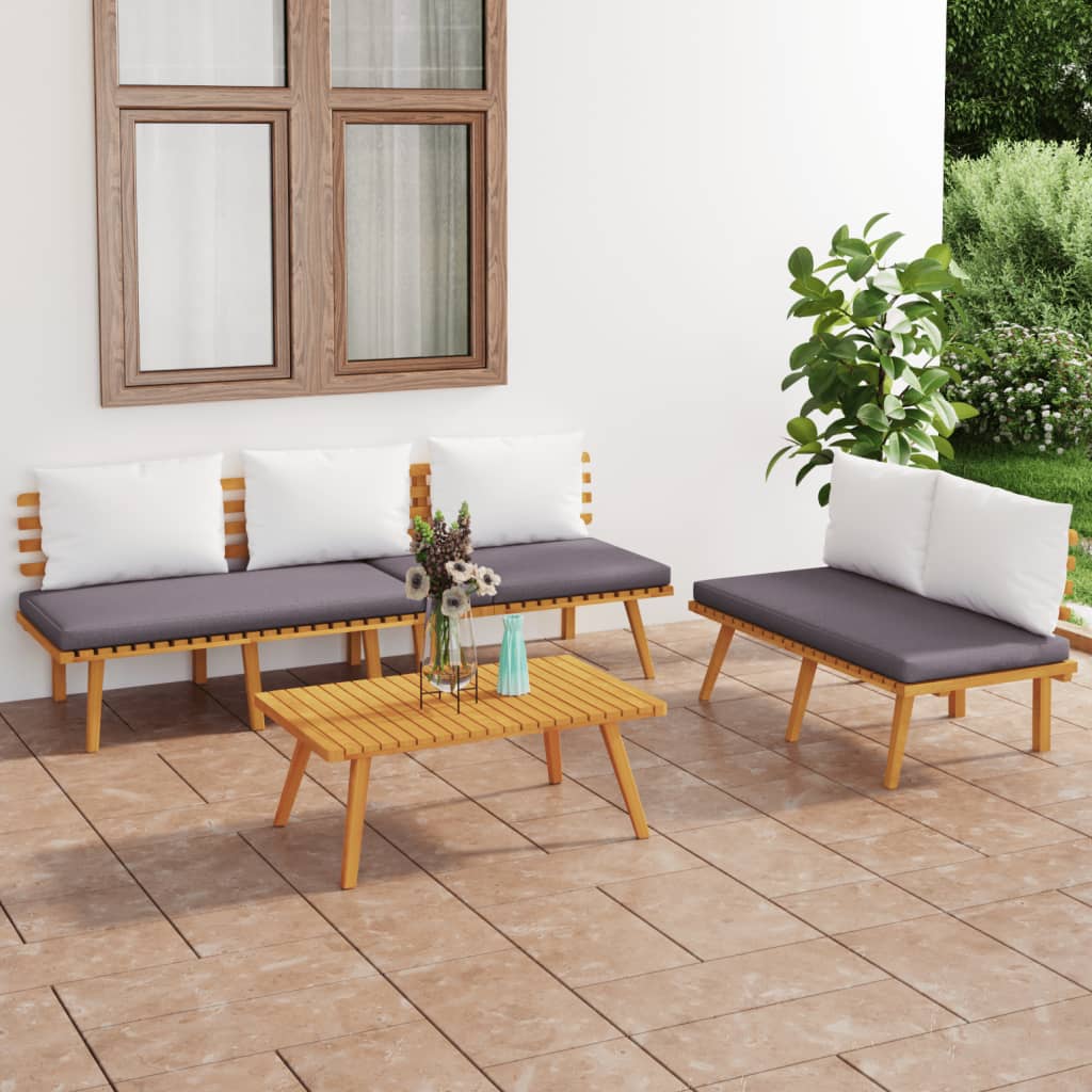 Diese Garten-Sofagarnitur aus Holz ist eine ausgezeichnete Wahl, um sich zu entspannen und das Wetter zu genießen, ein Nickerchen zu machen oder mit Ihrer Familie oder Freunden zu plaudern. Mit seinem zeitlosen Lattendesign verleiht dieses Lounge-Set aus Holz Ihrer Terrasse, Ihrem Garten oder Ihrem Hof einen Hauch von rustikalem Charme. Das aus massivem Akazienholz gefertigte Outdoor-Möbelset ist wetterbeständig und äußerst langlebig. In Kombination mit den dick gepolsterten Kissen bietet dieses Terrassen-Loungeset den größtmöglichen Komfort. Sie können es mit anderen modularen Elementen kombinieren, um Ihr ganz persönliches Garten-Lounge-Set zu konfigurieren! Hinweis: Um die Lebensdauer deiner Gartenmöbel zu verlängern, empfehlen wir dir, sie mit einer wasserdichten Abdeckung zu schützen.