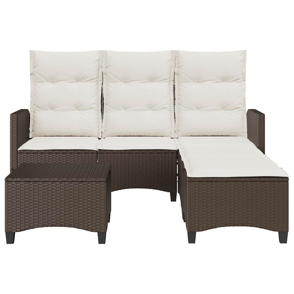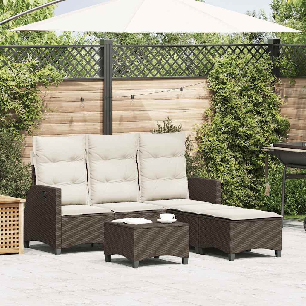 Dieses Gartensofa-Set in L-Form ist die perfekte Ergänzung zu deinem Garten, deiner Terrasse oder deinem Innenhof. Es bietet einen bequemen und einladenden Platz, um mit Familie und Freunden zu plaudern oder dich einfach nur zu entspannen und das Leben im Freien zu genießen. Langlebiges Material: PE-Rattan, auch als Poly Rattan bekannt, ist ein robustes, pflegeleichtes synthetisches Material, das die Optik von natürlichem Rattan aufweist. Es kennzeichnet sich durch ein geringes Eigengewicht und lässt sich einfach reinigen. Aufgrund seiner Haltbarkeit und Witterungsbeständigkeit wird es häufig bei der Herstellung von Gartenmöbeln verwendet.Verstellbare Rückenlehne: Diese Gartenmöbel haben einen Griff an jedem Sitz. So kannst du die Rückenlehne durch Ziehen des Griffes verstellen und sie danach schnell wieder in ihre ursprüngliche Position bringen.Bequemes Sitzerlebnis: Dieser Gartensessel mit dick gepolsterten Kissen bietet ein angenehmes Sitzgefühl.Abnehmbarer und waschbarer Bezug: Diese Sitzkissen verfügen über abnehmbare Bezüge für einfaches Waschen und Pflegen.Robuster und stabiler Rahmen: Dank des pulverbeschichteten Stahlrahmens ist das Möbelstück robust, stabil und für den täglichen Einsatz im Außenbereich geeignet. Gut zu wissen:Wir empfehlen dir, deine Gartenmöbel mit einer wasserdichten Hülle zu schützen, um lange Zeit eine ansprechende Optik aufzuweisen.