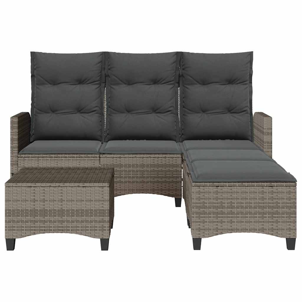 Dieses Gartensofa-Set in L-Form ist die perfekte Ergänzung zu deinem Garten, deiner Terrasse oder deinem Innenhof. Es bietet einen bequemen und einladenden Platz, um mit Familie und Freunden zu plaudern oder dich einfach nur zu entspannen und das Leben im Freien zu genießen. Langlebiges Material: PE-Rattan, auch als Poly Rattan bekannt, ist ein robustes, pflegeleichtes synthetisches Material, das die Optik von natürlichem Rattan aufweist. Es kennzeichnet sich durch ein geringes Eigengewicht und lässt sich einfach reinigen. Aufgrund seiner Haltbarkeit und Witterungsbeständigkeit wird es häufig bei der Herstellung von Gartenmöbeln verwendet.Verstellbare Rückenlehne: Diese Gartenmöbel haben einen Griff an jedem Sitz. So kannst du die Rückenlehne durch Ziehen des Griffes verstellen und sie danach schnell wieder in ihre ursprüngliche Position bringen.Bequemes Sitzerlebnis: Dieser Gartensessel mit dick gepolsterten Kissen bietet ein angenehmes Sitzgefühl.Abnehmbarer und waschbarer Bezug: Diese Sitzkissen verfügen über abnehmbare Bezüge für einfaches Waschen und Pflegen.Robuster und stabiler Rahmen: Dank des pulverbeschichteten Stahlrahmens ist das Möbelstück robust, stabil und für den täglichen Einsatz im Außenbereich geeignet. Gut zu wissen:Wir empfehlen dir, deine Gartenmöbel mit einer wasserdichten Hülle zu schützen, um lange Zeit eine ansprechende Optik aufzuweisen.