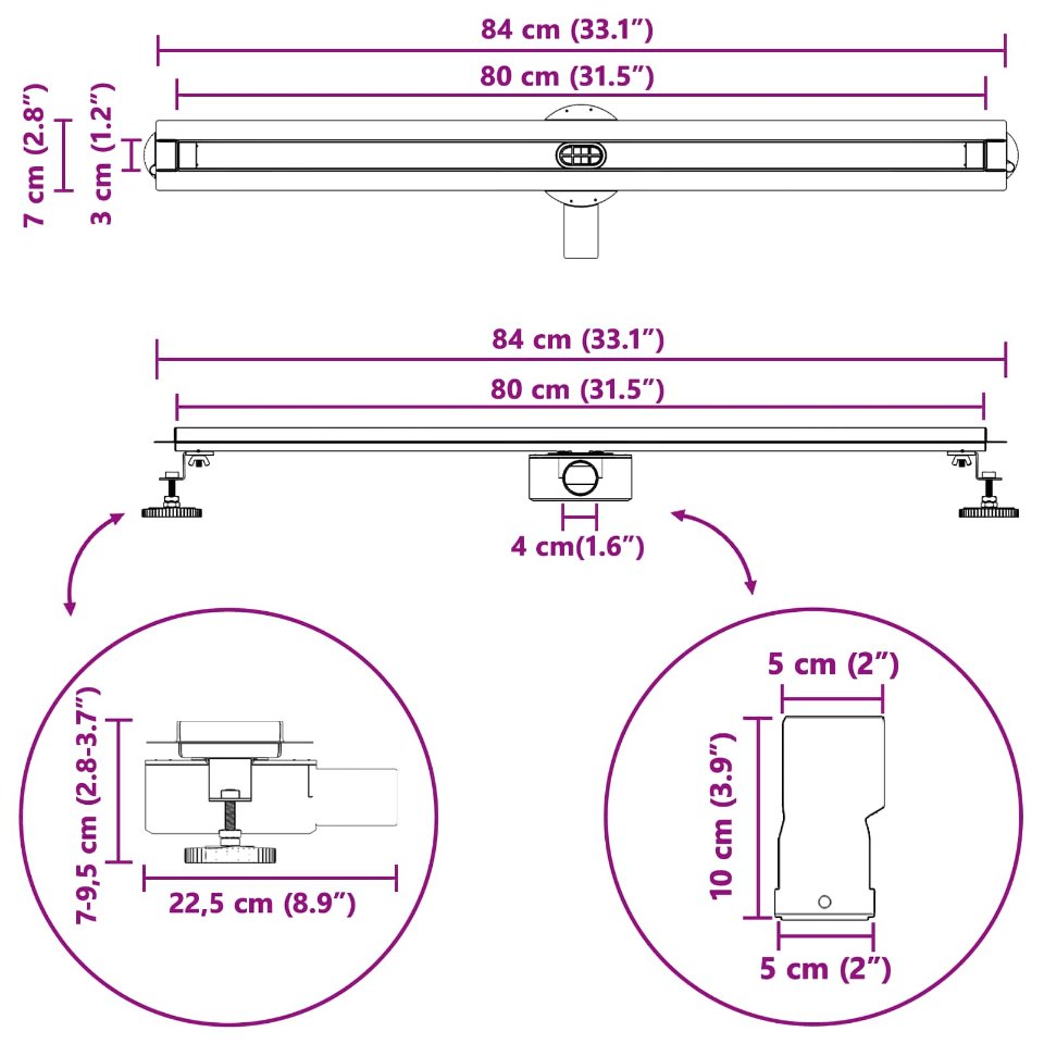 Der 360° Duschabfluss im Slim-Modell ist eine coole Lösung für moderne Badezimmer. Er kombiniert Funktionalität und schlichte Eleganz. Das schlanke, silberne Finish und die Edelstahlkonstruktion machen ihn super haltbar und schick. Ideal für Hausbesitzer, die ansprechendes Design und Praktikabilität lieben, fügt sich der Duschabfluss nahtlos in jeden modernen Raum ein. Er bietet eine clevere Entwässerungslösung mit ansprechendem Look, perfekt für Räume, in denen jedes Detail zählt. Robustes Edelstahl: Der Duschabfluss aus Edelstahl ist ultra widerstandsfähig und sorgt für Langlebigkeit und schicke Eleganz. Dieses Material macht das Produkt nicht nur optisch attraktiv, sondern ist auch hygienisch für dein Badezimmer. Funktionale Komponenten: Das Abflussset kommt mit höhenverstellbaren Füßen, einem praktischen Haken für den Deckel und einem wasserabweisenden Tuch, das die Installation und Pflege vereinfacht. Jedes Teil sorgt dafür, dass die Nutzung angenehm und der Abfluss praktisch bleibt. Stylisches Design: Mit modernem Look bietet es klare Linien und eine glatte silberne Oberfläche, die super zu aktuellen Badezimmerdesigns passt. Das schlanke Profil des Abflusses gibt deinem Duschbereich einen stilvollen Akzent, der problemlos mit verschiedenen Fliesen harmoniert. Vielseitige Verwendung: Geeignet für große und kleine Badezimmer kann dieser Abfluss in privaten und gewerblichen Installationen eingesetzt werden. Dank seiner flexiblen Installation ist er ideal für verschiedene Umgebungen und passt perfekt zu unterschiedlichen Designbedürfnissen und -stilen. Einfache Pflege & Wartung: Nach der Installation ist das schlichte Design super pflegeleicht. Regelmäßige Reinigung mit dem Haken sorgt dafür, dass alles sauber bleibt und die Abflussleistung sowie das Aussehen top bleiben.