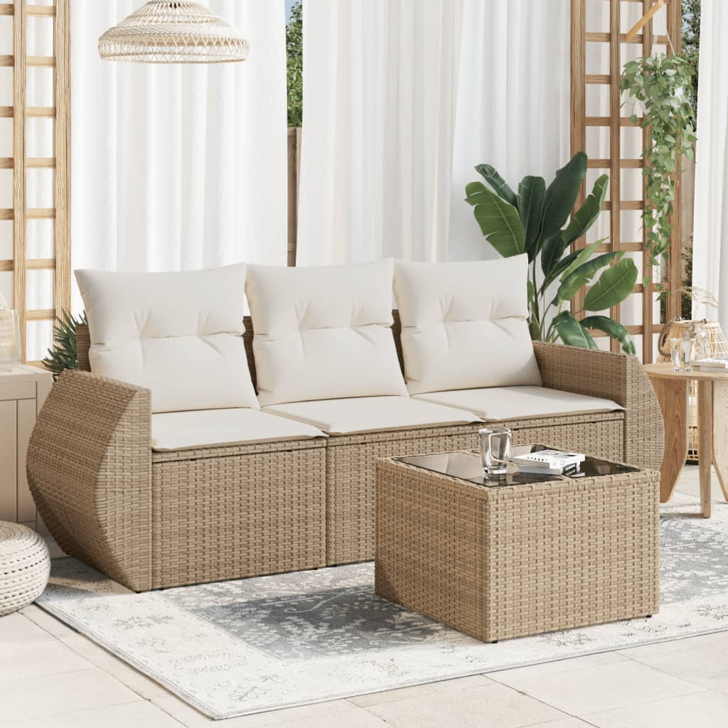 Diese Garten-Sofagarnitur ist die perfekte Ergänzung zu deinem Garten, deiner Terrasse oder deinem Innenhof. Sie bietet einen bequemen und einladenden Platz, um mit Familie und Freunden zu plaudern oder dich einfach nur zu entspannen und das Leben im Freien zu genießen. Langlebiges Material: PE-Rattan, auch als Poly Rattan bekannt, ist ein robustes, pflegeleichtes synthetisches Material, das die Optik von natürlichem Rattan aufweist. Es kennzeichnet sich durch ein geringes Eigengewicht und lässt sich einfach reinigen. Aufgrund seiner Haltbarkeit und Witterungsbeständigkeit wird es häufig bei der Herstellung von Gartenmöbeln verwendet.Stauraum mit wasserfestem Beutel: Jedes Gartensofa verfügt über ein Staufach unter der Sitzfläche, das mit einem wasserfesten Beutel zur Aufbewahrung von Kissen, Spielzeug und anderen Gegenständen versehen ist. Die Kissen sind mit Bezügen versehen und lassen sich mit Klettverschlüssen fest und sicher an den Sofas befestigen.Tischplatte aus Glas: Die Tischplatte des Gartentisches besteht aus starkem und langlebigem Hartglas, sodass sie leicht mit einem feuchten Tuch gereinigt werden kann und deinem Außenbereich einen Hauch von Eleganz verleiht.Abnehmbarer und waschbarer Bezug: Diese Sitzkissen verfügen über abnehmbare Bezüge für einfaches Waschen und Pflegen.Modulares Design: Dank des modularen Designs lassen sich die Gartenmöbel völlig flexibel und einfach umstellen, um deinen Außenbereich ganz individuell zu gestalten. Gut zu wissen:Wir empfehlen dir, deine Gartenmöbel mit einer wasserdichten Hülle zu schützen, um lange Zeit eine ansprechende Optik aufzuweisen.
