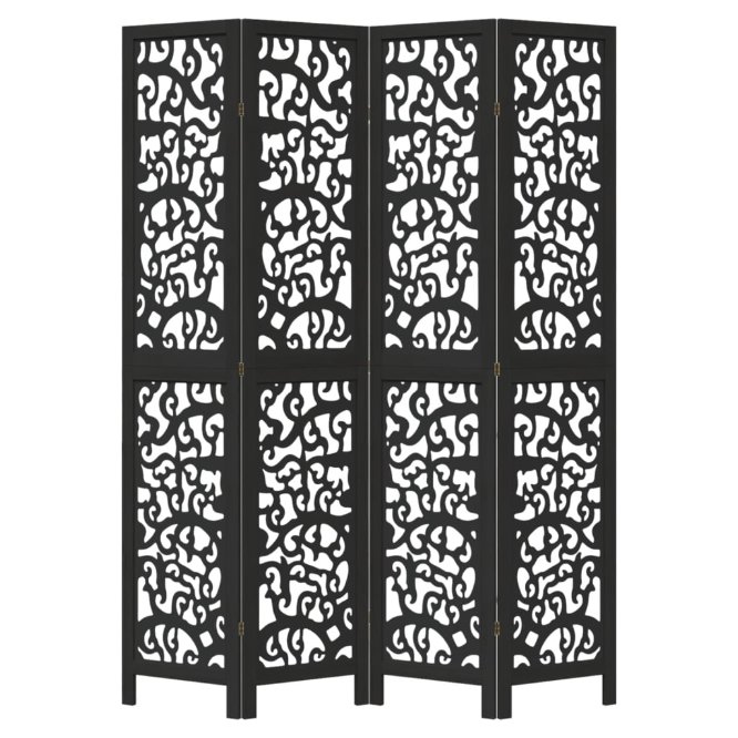 Verleihe deinem Wohnraum eine auffällige dekorative Note mit diesem bezaubernden Raumteiler. Langlebig und leicht zu reinigen: Der Sichtschutz ist aus Paulownia-Massivholz und Holzwerkstoff gefertigt, wodurch er pflegeleicht und strapazierfähig ist.Robuster Rahmen: Der Rahmen aus massivem Paulownia-Holz sorgt für Robustheit und Stabilität. Paulownia-Massivholz ist ein wunderschönes Naturmaterial. Paulowniaholz ist widerstandsfähig gegen Schädlingsbefall und Verrottung.Flexibel und einfach faltbar: Die Paravent-Teile sind jeweils durch 3 Metallscharniere miteinander verbunden. Die oberen und unteren Paneele dieser spanischen Wand sind durch verborgene 2-in-1-Scharniere verbunden. Der Raumtrenner kann also leicht bis zu einem gewissen Grad zusammengeklappt werden; dadurch spart er bei Nichtgebrauch Platz.Vielseitig einsetzbar: Die Trennwand eignet sich hervorragend zur Schaffung von Privatsphäre im Schlafzimmer, Wohnzimmer, Büro und anderen Räumen. Du kannst das Paravent auch vor ein Fenster stellen, um intensives Sonnenlicht abzuschirmen.Attraktiver Look: Mit seinem filigranen Muster verleiht diese faltbare Trennwand jedem Raum mehr Charakter. Achtung:Nur für den Innenbereich!