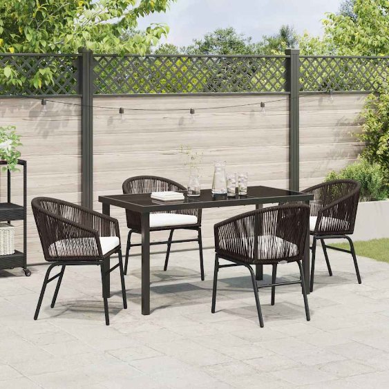 Dieses Set aus zwei Gartenstühlen verbindet minimalistischen Stil mit Komfort. Es ist ideal für Terrassen, Gärten oder Balkone. Die Stühle sind aus rundem PE-Rattan auf einem soliden pulverbeschichteten Stahlrahmen gefertigt. Sie sind für verschiedene Wetterbedingungen geeignet und bringen gleichzeitig modernen Charme in deinen Raum. Wetterfest: Hergestellt aus UV-beständigen Materialien, halten diese Stühle Sonne und Regen stand und sehen dabei lange gut aus. Bequeme Kissen: Jeder Stuhl hat weich gepolsterte Kissen aus wasserabweisendem Polyester, sodass du das Entspannen im Freien genießen kannst, ohne dir Sorgen machen zu müssen, die Kissen bei Regen drinnen aufbewahren zu müssen. Stilvolles Design: Das minimalistische Design mit Retro-Einflüssen bringt einen schicken Akzent in deine Außenbereiche und fügt sich nahtlos in klassische sowie moderne Stile ein. Stabiler Rahmen: Mit ihrem robusten pulverbeschichteten Stahlrahmen bieten diese Stühle die nötige Stabilität für deine Outdoor-Aktivitäten, sodass du dich ganz entspannt um deine Gäste kümmern kannst. Vielseitige Nutzung: Ob für gemütliche Mahlzeiten, entspanntes Sitzen oder gesellige Runden – diese Stühle sind eine großartige Bereicherung für jeden Außenplatz, von Familienessen bis hin zu ruhigen Abenden unter dem Sternenhimmel.