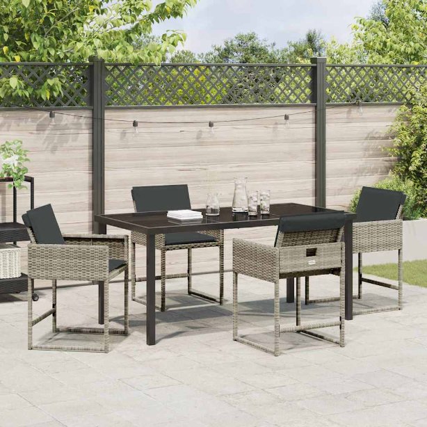 5-teiliges Garten-Esszimmer-Set mit Kissen, hellgrauem Poly-Rattan