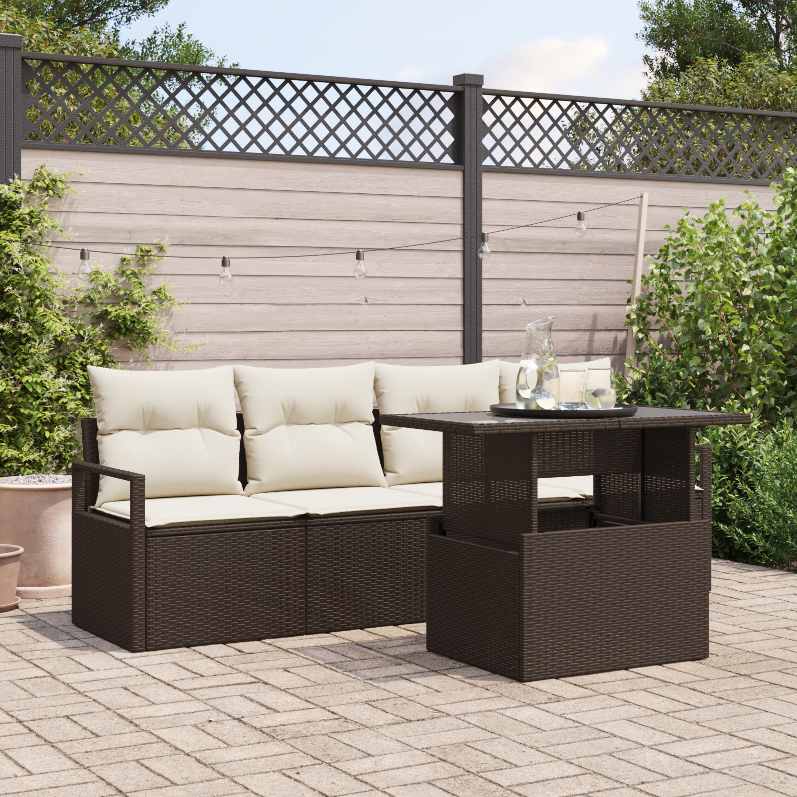 Dieses 5-teilige Outdoor-Garten-Sofa-Set in schickem Braun und Creme kombiniert Komfort mit modernem Design und ist eine perfekte Ergänzung für Balkone oder Terrassen. Hergestellt aus handgewebtem Rattan und bequemen Kissen, sorgt es für eine tolle Atmosphäre bei geselligen Zusammenkünften oder gemütlichen Abenden unter den Sternen. Unglaublicher Komfort: Das Sofa-Set hat abnehmbare Kissen aus wetterbeständigem Polyestermaterial. Genieße den Komfort, egal wie das Wetter ist, mit Kissen, die tollen Halt bieten. Stabile Konstruktion: Hergestellt aus hochwertigem, natürlichem Rattan, ist dieses Outdoor-Möbelset für verschiedene Wetterbedingungen geschaffen. Der stabile Rahmen sorgt für Stabilität und ein gutes Aussehen für den täglichen Gebrauch. Vielseitig einsetzbar: Ideal für jeden Außenbereich, ob im Garten, auf dem Balkon oder auf der Terrasse. Das modulare Design lässt sich in verschiedenen Sitz-Layouts anpassen, ganz nach deinen Bedürfnissen. Einfach zu reinigen: Mit abnehmbaren Sitzkissen, die sich leicht abziehen lassen, ist die Reinigung ein Kinderspiel und sorgt dafür, dass deine Außensitzgelegenheiten immer top aussehen. Stylisches Design: Das moderne Design hat klare Linien und eine matte Oberfläche, die jeden Außenbereich aufwertet und sowohl Stil als auch Gemütlichkeit bringt.