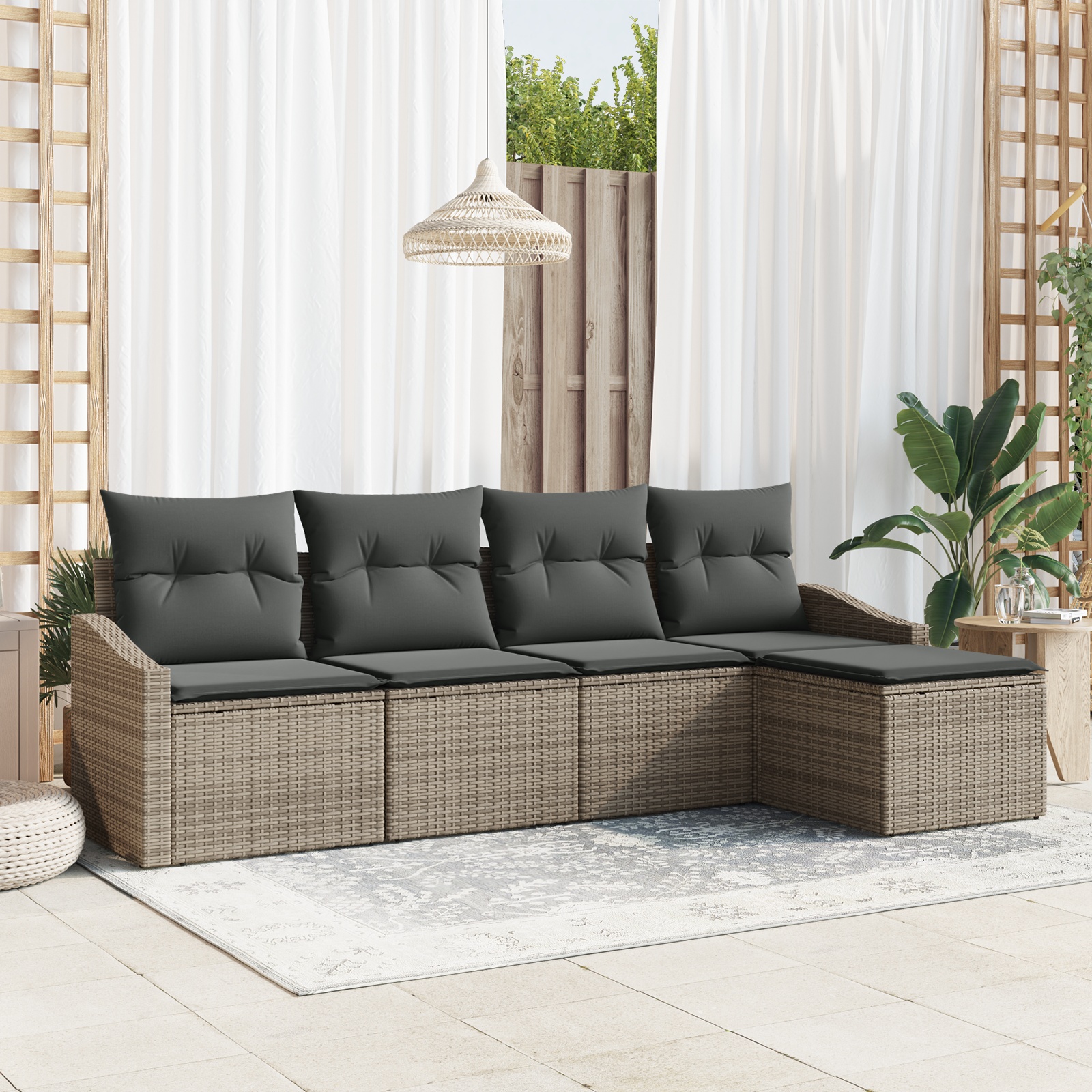 Dieses Garten-Sofa-Set kombiniert clever Stil und Funktionalität und ist eine tolle Ergänzung für deinen Innen- oder Außenbereich. Das schicke Poly-Rattan und die hochwertigen grauen und braunen Kissen bieten nicht nur Komfort, sondern sehen auch top aus und passen zu jedem Dekor. Bequeme Sitzgelegenheit: Die weichen Kissen in anthrazitgrau sind für maximales Entspannen gemacht, sodass du stundenlang chillen kannst, während du hostest oder einfach draußen relaxst. Vielseitiges Design: Dieses modulare Sofa eignet sich sowohl drinnen als auch draußen und lässt sich überall einsetzen, passend zu deinem Lebensstil. Robuster Rahmen: Aus strapazierfähigem Poly-Rattan mit matter Oberfläche, hält dieses Sofa jedem Wetter stand und sieht auch bei rauen Bedingungen gut aus. Einfache Pflege: Mit abnehmbaren Kissenbezügen und pflegeleichten Materialien ist es super einfach, dieses Sofa-Set sauber zu halten, damit du mehr Zeit zum Entspannen hast. Geräumige Anordnung: Bietet bequem Platz für bis zu vier Personen, perfekt für Zusammenkünfte oder Familienzeit und gibt deinem Raum einen Hauch von Eleganz.