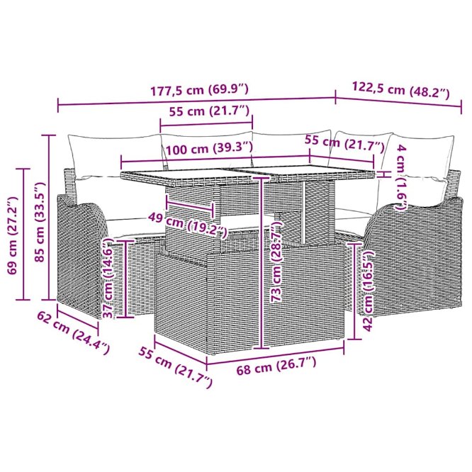 - Lieferumfang: 4 Artikel: Sofa-Set und Tisch