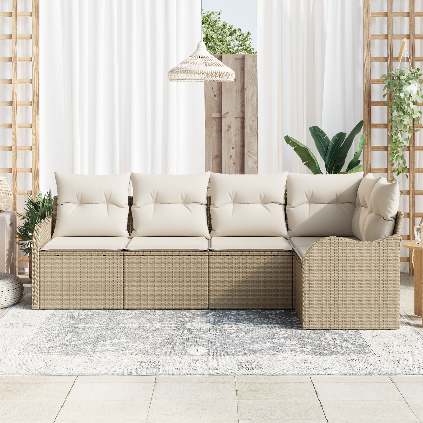 Dieses modulare Garten-Sofa-Set verbindet Stil und Funktionalität und ist perfekt, um deinen Außenbereich zu verschönern. Mit schönen beige und creme Farben und dem handgewebten Rattan-Design ist es ein echter Hingucker für Terrassen, Balkone oder Gärten – ein gemütlicher Platz zum Entspannen. Beeindruckende Ästhetik: Die schöne beige und creme Kombination fügt Eleganz hinzu und passt perfekt zu verschiedenen Gartenstilen. Sie fügt sich wunderbar in die Umgebung ein und macht deinen Außenbereich einladender. Geräumige Sitzmöglichkeiten: Platz für vier macht bequeme Zusammenkünfte oder entspannte Abende mit deinen Liebsten möglich. Der großzügige Bereich ist ideal für das Teilen von Erinnerungen unter den Sternen. Kissenkomfort: Jedes Stück hat dicke, abnehmbare Kissen für weiche Unterstützung und sieht dabei ordentlich aus. Die Reinigung ist dank des Reißverschlusses kinderleicht. Wetterfest: Speziell für den Außenbereich konzipiert, ist dieses Set dafür gemacht, verschiedenen Wetterbedingungen standzuhalten, sodass du viele Jahre Freude daran hast. Vielseitige Nutzung: Perfekt zum Essen, Lesen oder einfach nur Entspannen, passt dieses modulare Sofa zu jedem Anlass, von Mahlzeiten im Freien bis hin zu gemütlichen Nächten unter den Sternen.
