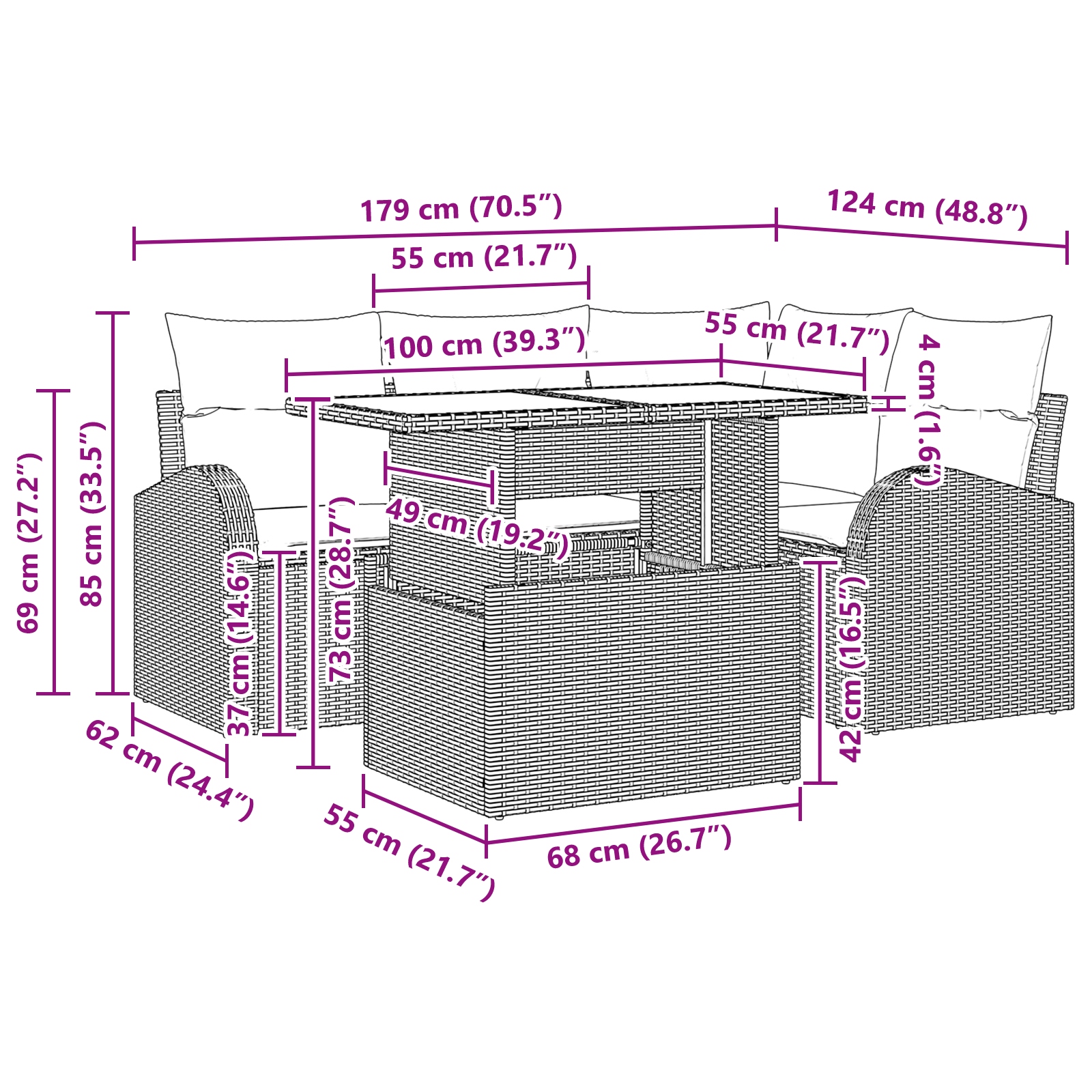 Das Garten Sofa Set ist dein Ticket zu einem perfekten Outdoor-Hangout. Ideal für faule Nachmittage oder Treffen mit Freunden. Mit einem modernen Stil und einer coolen Mischung aus schwarzem Poly Rattan und bequemen Kissen bietet es dir beides: Komfort und ein gutes Aussehen. Geräumige Sitzkapazität: Dieses Sofa Set hat Platz für 4 Personen und passt perfekt zu geselligen Zusammenkünften oder Familienmahlzeiten im Freien. Es bietet den idealen Rahmen für gute Gespräche und Entspannung, um dein Outdoor-Erlebnis zu verbessern. Modernes Design: Das coole Design hat eine schicke Ausstrahlung und passt in alle möglichen Außenbereiche, von Balkonen bis zu großen Patios. Es bringt frischen Wind in deinen Raum mit minimalem Aufwand. Robuste Bauweise: Hergestellt aus hochwertigen, UV-beständigen Materialien, hält das Sofa Set jedem Wetter stand. Das langlebige Poly Rattan sieht nicht nur toll aus, sondern bleibt auch lange schön. Einfache Pflege: Die Kissen haben Reißverschlüsse, damit du sie leicht reinigen kannst. So bleibt dein Sofa in einem einladenden Zustand. Mit einfachen Pflegehinweisen behältst du das Sofa ganz locker in Schuss. Vielseitige Nutzung: Dieses Set eignet sich perfekt für verschiedene Situationen, von intimen Abendessen bis zu entspannten Treffen. Die rechteckige Form bietet praktische Nutzung und sieht gleichzeitig klasse aus.