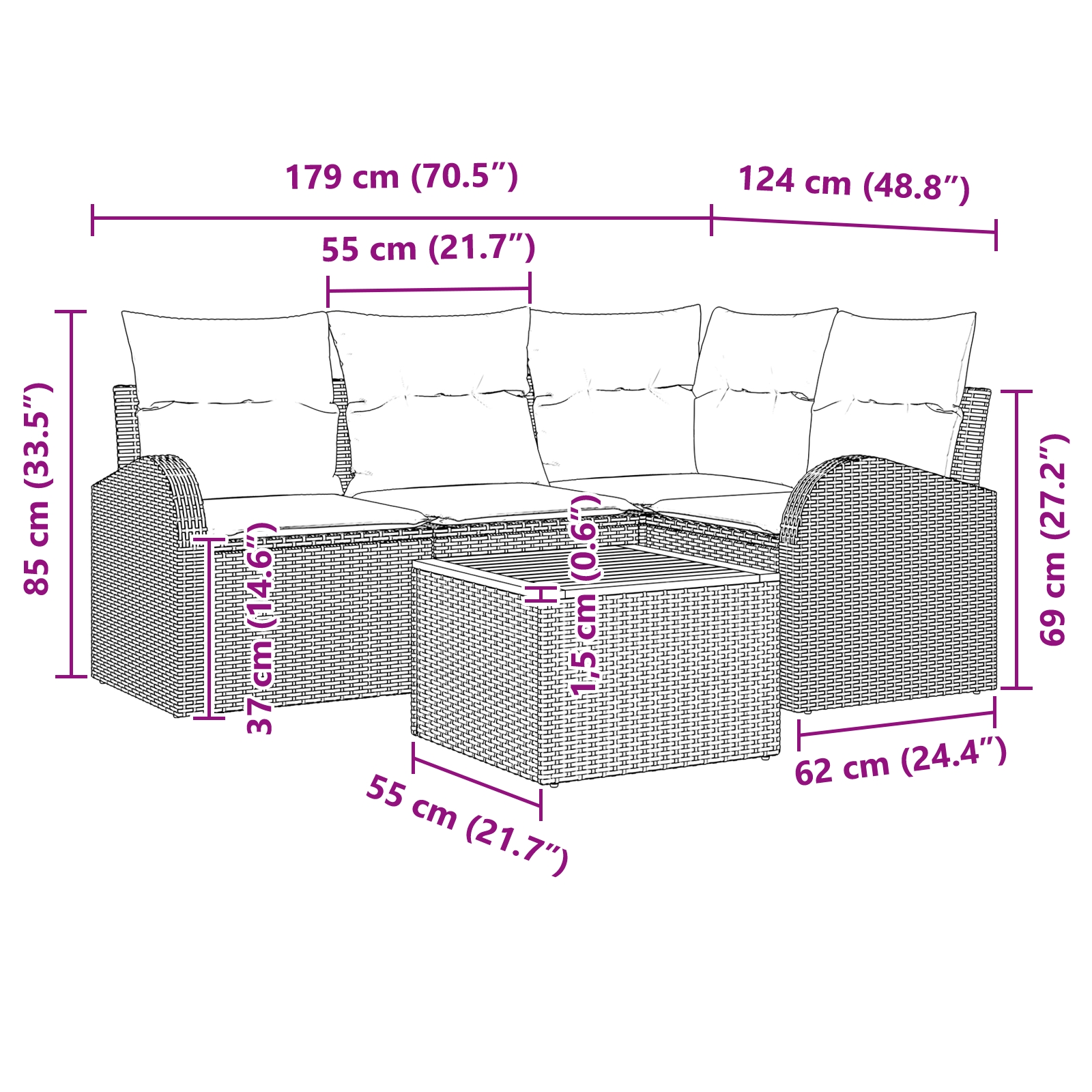 Dieses Garten Sofa Set vereint modernes Design mit Komfort. Die schicke schwarze Farbe passt zu jedem Außenbereich, egal ob auf dem Balkon oder im Garten. Es eignet sich perfekt, um mit Freunden oder der Familie entspannend abzuhängen. Elegante Ästhetik: Das stilvolle, ganz schwarze Poly Rattan und das glatte Akazienholz geben deinem Außenbereich einen modernen Touch. Vielseitige Sitzgelegenheit: Bietet Platz für bis zu vier, perfekt für gemütliche Zusammenkünfte. Robuste Konstruktion: Hergestellt aus hochwertigem Rattan und pulverbeschichtetem Stahl, geeignet für unterschiedliche Wetterbedingungen. Bequeme Kissen: Dicke, abnehmbare Kissen bieten luxuriösen Komfort, ideal für entspannte Stunden im Freien. Einfache Pflege: Kissen mit Reißverschluss ermöglichen eine schnelle Reinigung und halten dein Sofa die ganze Saison über frisch.