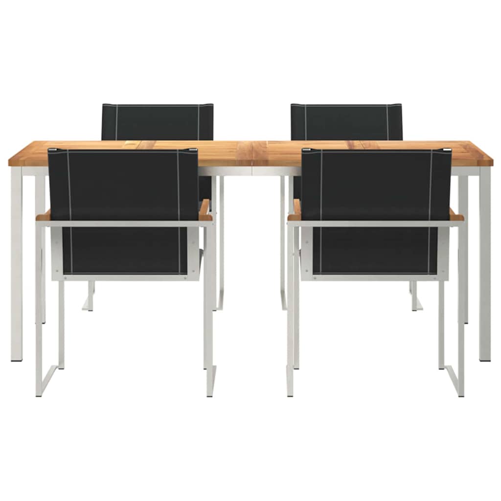 Dieses geräumige Garten Essset ist perfekt, um draußen zu essen. Es kommt mit einem großzügigen rechteckigen Tisch und vier modernen Stühlen. Das Set kombiniert massives Akazienholz mit einem stabilen rostfreien Stahlrahmen und ist eine stylische und praktische Ergänzung für jeden Außenbereich. Dieses Outdoor Essset bringt die natürliche Holzschönheit und modernes Design zusammen und ist ein Hingucker bei deinen Treffen im Freien. Die solide Bauweise hält allen Wetterbedingungen stand und sorgt dafür, dass du über Jahre hinweg Freude daran hast. Die bequemen Akazienholzsitze der Stühle sorgen dafür, dass du die frische Luft beim Essen richtig genießen kannst. Die geräumige rechteckige Form bietet genug Platz zum Essen und ist perfekt für Familientreffen oder um Gäste zu empfangen. Ideal für Außenbereiche wie Gärten, Balkone oder Terrassen und verwandelt jede Mahlzeit in etwas Besonderes.