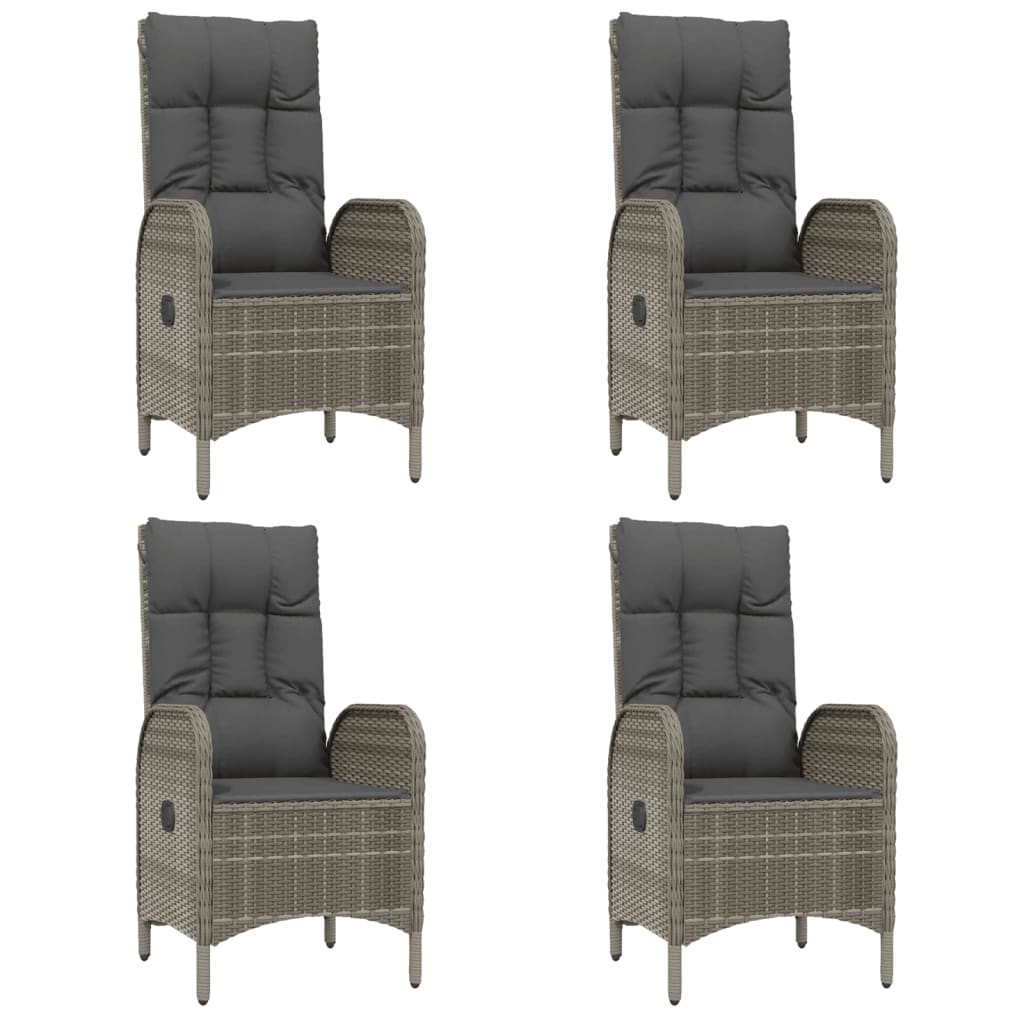 Mit ihrem eleganten und modernen Design ist diese trendige Garten-Essgruppe eine großartige Wahl für Mahlzeiten oder zum Entspannen in deinem Garten. Wetterfestes Material: PE-Rattan, auch als Poly Rattan bekannt, ist witterungsbeständig und pflegeleicht. Seine Oberfläche weist lange Zeit eine ansprechende Optik auf. Es bietet hohe Qualität, Komfort und einen ästhetisches Look.Stabiler Rahmen: Dank der pulverbeschichteten Stahlrahmen ist die Outdoor-Essgruppe robust, stabil und für den täglichen Einsatz im Außenbereich bestens geeignet.Praktische Tischplatte: Die glatte Tischplatte besteht aus Hartglas, das sich leicht mit einem feuchten Tuch reinigen lässt. Darüber hinaus bietet die stabile Tischplatte den perfekten Platz für Speisen, Getränke und verschiedene Dekoartikel.Liegefunktion: Diese Gartensessel sind mit Liegefunktion ausgestattet, sodass sich die Rückenlehne je nach Bedarf verstellen lässt.Bequemes Sitzgefühl: Die Rückenlehne verleiht dem Gartenstuhl höchsten Sitzkomfort. Zum hohen Sitzkomfort tragen auch die dick gepolsterten Kissen bei. Gut zu wissen:Um die Montage so einfach wie möglich zu machen, wird jedes Produkt mit einer Anleitung geliefert. Hinweis:Damit deine Gartenmöbel lange schön bleiben, empfehlen wir dir, sie mit einer wasserdichten Hülle zu schützen.
