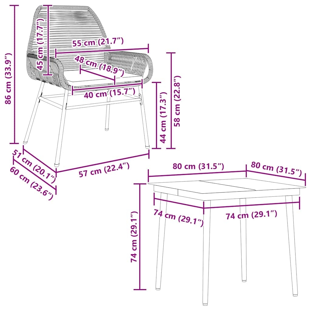 - Abmessungen: 80 x 80 x 74 cm (L x B x H)