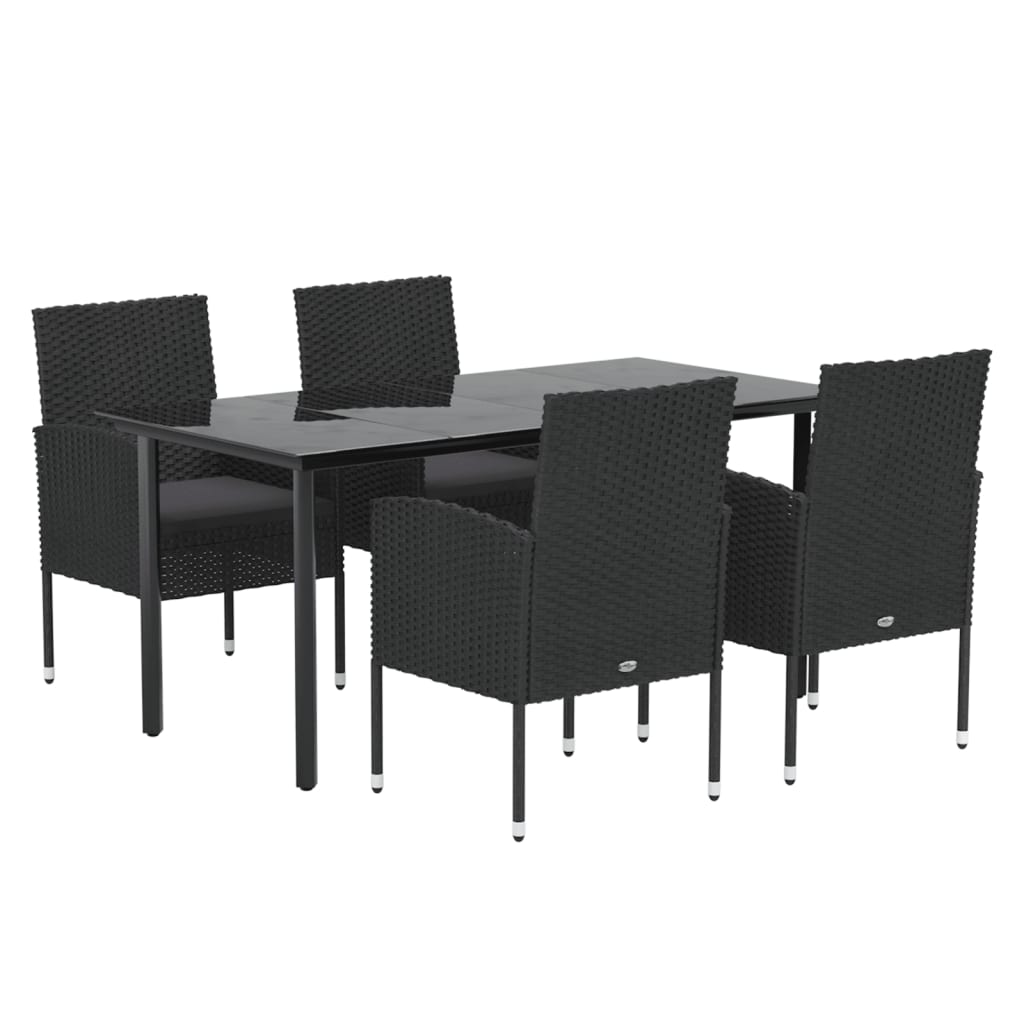 Genießen Sie eine angenehme Mahlzeit oder Ihren Nachmittagstee in Ihrem Außenbereich an dieser Garten-Essgruppe! Wetterfestes Material: PE-Rattan, auch als Poly Rattan bekannt, ist witterungsbeständig und pflegeleicht. Seine Oberfläche weist lange Zeit eine ansprechende Optik auf. Es bietet hohe Qualität, Komfort und einen ästhetisches Look.Stabiler Rahmen: Dank der pulverbeschichteten Stahlrahmen ist die Outdoor-Essgruppe robust, stabil und für den täglichen Einsatz im Außenbereich bestens geeignet.Praktische Tischplatte: Die glatte Tischplatte des Esstisches besteht aus Hartglas, das sich leicht mit einem feuchten Tuch reinigen lässt. Zudem bietet die robuste Tischplatte den perfekten Platz für Speisen, Getränke und einige Dekoartikel.Komfortables Design: Mit geschwungenen Rückenlehnen und Armlehnen versehen, bieten diese Gartenstühle höchsten Komfort.Zusätzlicher Komfort: Die dick gepolsterten Kissen sorgen für höchsten Sitzkomfort in deiner Freizeit. Hinweis:Um die Lebensdauer deiner Gartenmöbel zu verlängern, empfehlen wir dir, sie mit einer wasserdichten Hülle zu schützen.Jedes Produkt wird mit einer Montageanleitung in der Verpackung für einen einfachen Zusammenbau geliefert.