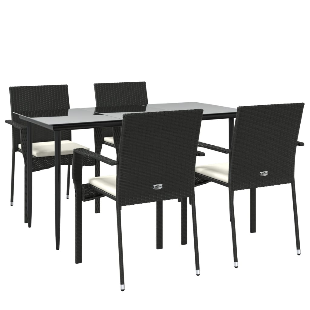 5-tlg. Garten-Essgruppe mit Kissen Schwarz Poly Rattan