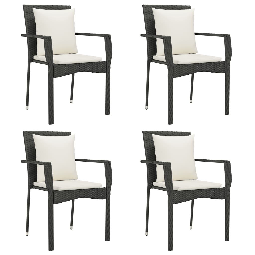 5-tlg. Garten-Essgruppe mit Kissen Schwarz Poly Rattan