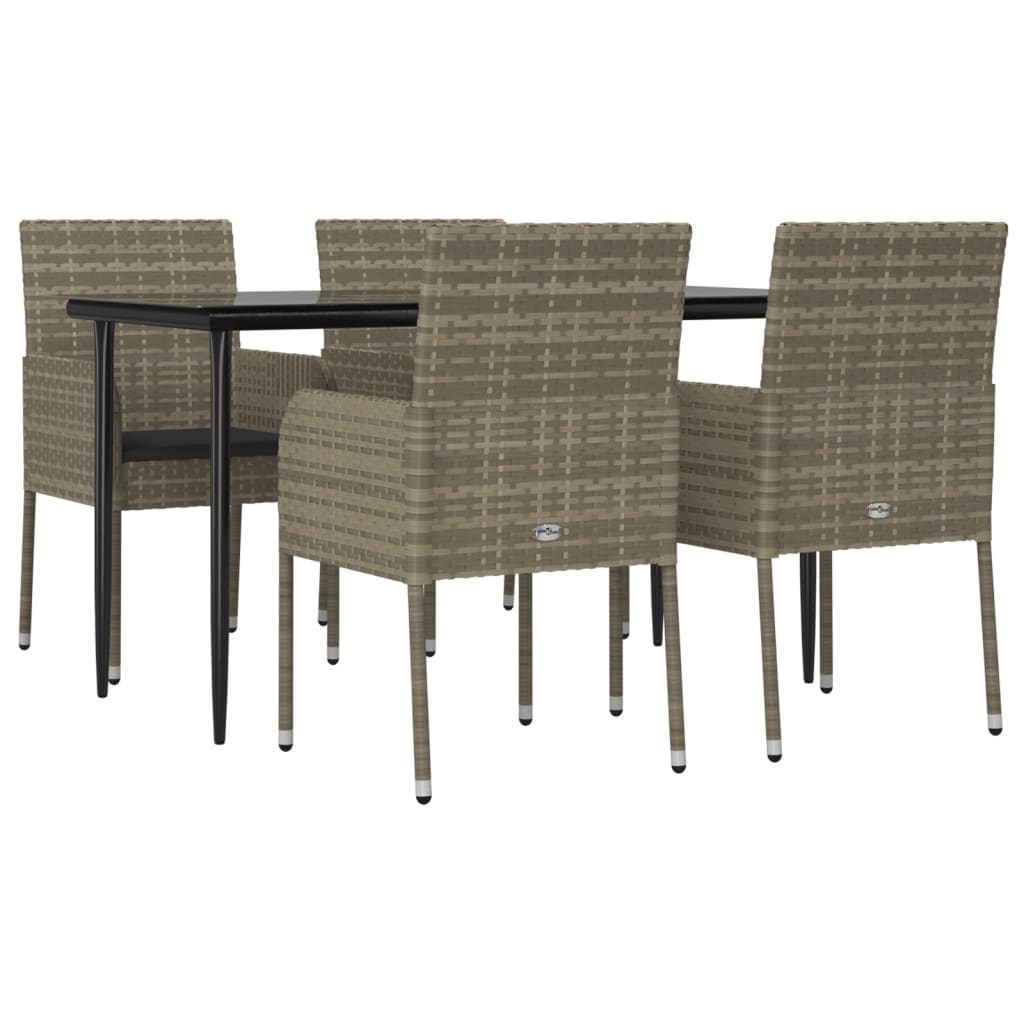5-tlg. Garten-Essgruppe mit Kissen Schwarz und Grau Poly Rattan