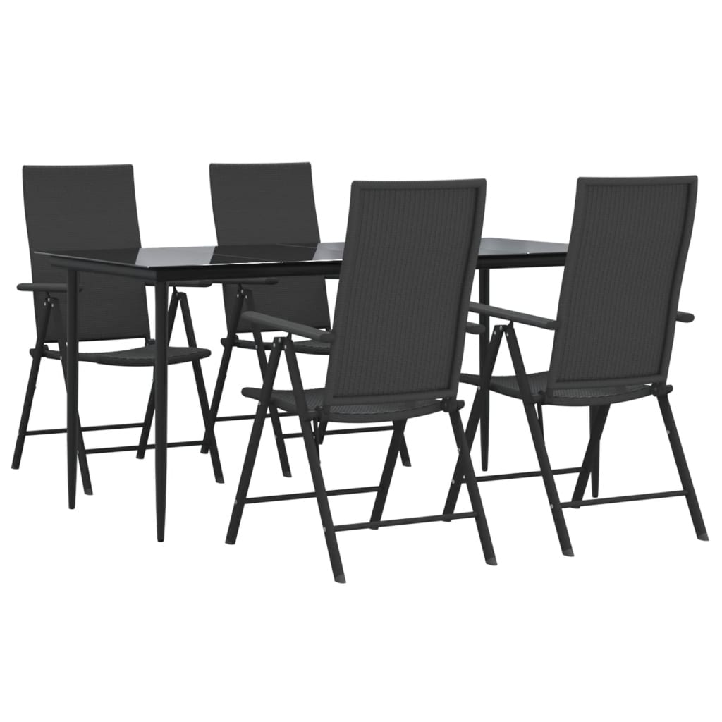 Schaffen Sie mit dieser Garten-Essgruppe eine überzeugende und zusammenhängende Ästhetik in Ihrem Außenbereich! Wetterfestes Material: PE-Rattan, auch als Poly Rattan bekannt, ist witterungsbeständig und pflegeleicht. Seine Oberfläche weist lange Zeit eine ansprechende Optik auf. Es bietet hohe Qualität, Komfort und einen ästhetisches Look.Stabiler Rahmen: Dank der pulverbeschichteten Stahlrahmen ist die Outdoor-Essgruppe robust, stabil und für den täglichen Einsatz im Außenbereich bestens geeignet.Praktische Tischplatte: Die glatte Tischplatte des Esstisches besteht aus Hartglas, das sich leicht mit einem feuchten Tuch reinigen lässt. Zudem bietet die robuste Tischplatte den perfekten Platz für Speisen, Getränke und einige Dekoartikel.Verstellbar und klappbar: Die Rückenlehnen der Stühle lassen sich in 7 Positionen verstellen, um stets die bequemste Sitzposition zu finden. Zudem lassen sich die Gartenstühle bei Nichtgebrauch platzsparend zusammenklappen. Hinweis:Um die Lebensdauer deiner Gartenmöbel zu verlängern, empfehlen wir dir, sie mit einer wasserdichten Hülle zu schützen.Jedes Produkt wird mit einer Montageanleitung in der Verpackung für einen einfachen Zusammenbau geliefert.