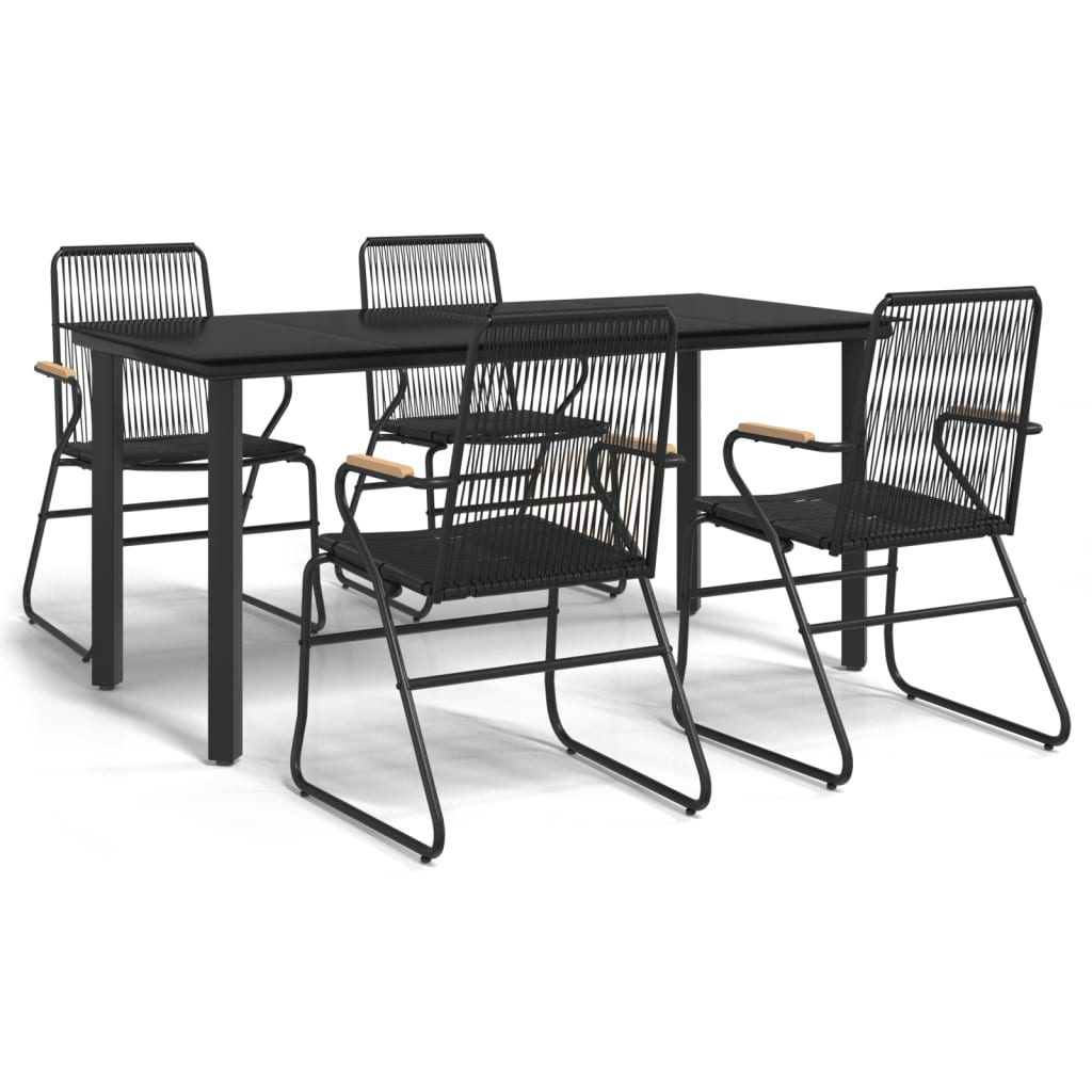 5-tlg. Garten-Essgruppe Schwarz PVC Rattan