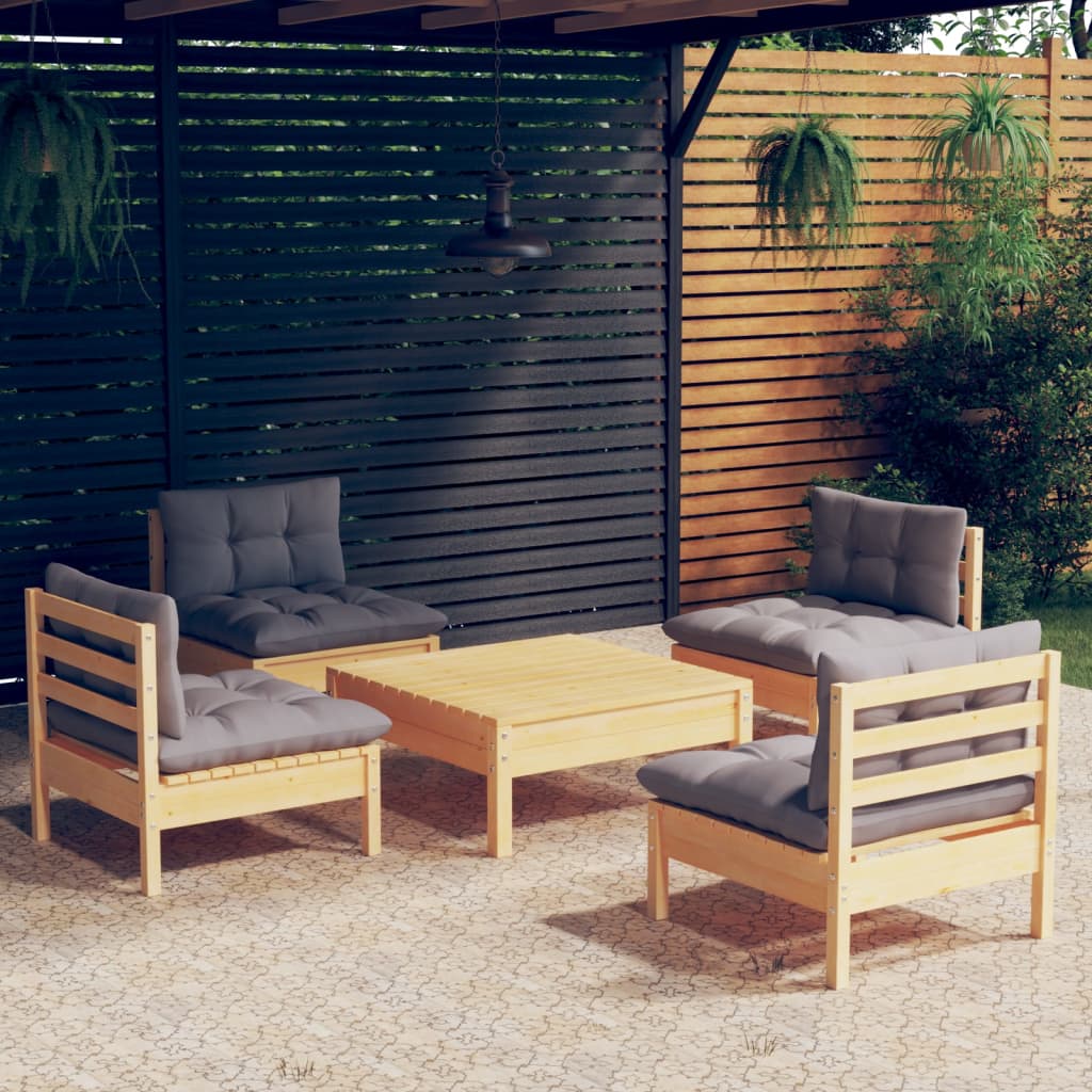 Startseite » Möbel » Gartenmöbel » Gartenmöbel-Sets » 5-tlg. Garten-Lounge-Set mit Grauen Kissen Kiefernholz