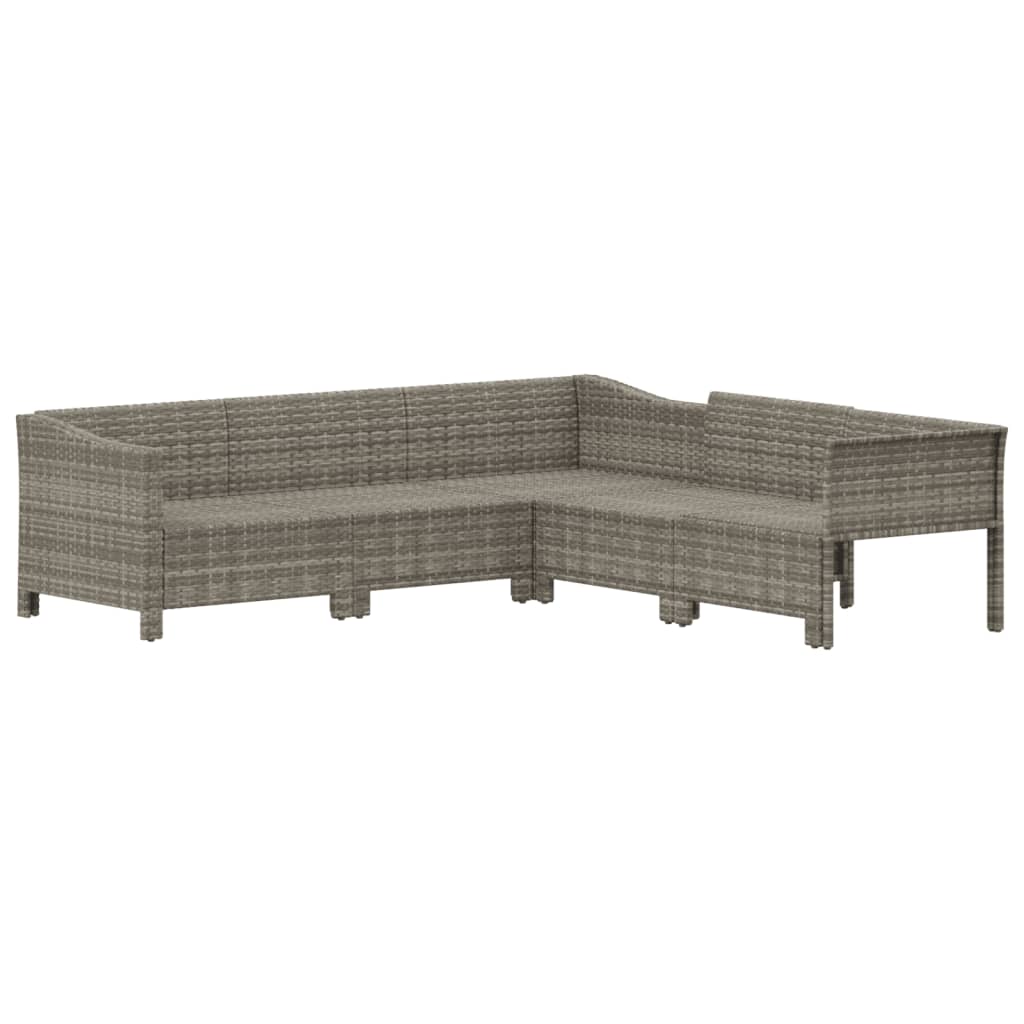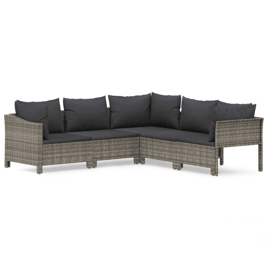 5-tlg. Garten-Lounge-Set mit Kissen Grau Poly Rattan
