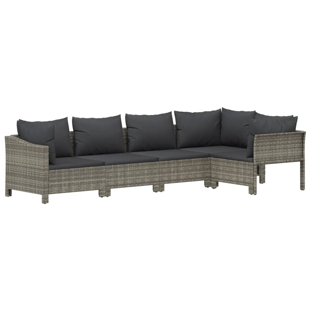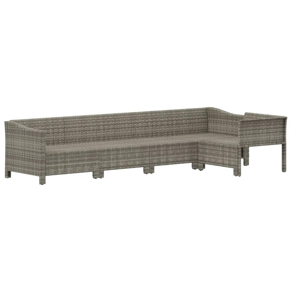 Mit seinem eleganten und modernen Design ist dieses trendige Garten-Lounge-Set eine großartige Wahl zum Entspannen in deinem Garten. Langlebiges Material: PE-Rattan, auch als Poly Rattan bekannt, ist witterungsbeständig und pflegeleicht. Seine Oberfläche weist lange Zeit eine ansprechende Optik auf. Es ist kostengünstiger als andere Materialien und bietet gleichzeitig hohe Qualität, Komfort und einen ästhetisches Look.Stabiler Rahmen: Stahl ist ein außergewöhnlich hartes und starkes Material. Er bietet Robustheit und Stabilität. Die Pulverbeschichtung bildet eine Schutzschicht gegen Abnutzung und Verschleiß.Modulares Design: Jedes Teil lässt sich leicht umstellen, um je nach Bedarf verschiedene Konfigurationen zu erstellen. In unserem Webshop sind auch andere modulare Elemente erhältlich, mit denen du dein eigenes Lounge-Set zusammenstellen kannst.Bequemes Sitzerlebnis: Dank der dick gepolsterten Sitz- und Rückenkissen ist das Outdoor-Lounge-Set sehr bequem. Gut zu wissen:Um die Montage so einfach wie möglich zu machen, wird jedes Produkt mit einer Anleitung geliefert. Hinweis:Damit deine Gartenmöbel lange schön bleiben, empfehlen wir dir, sie mit einer wasserdichten Hülle zu schützen.