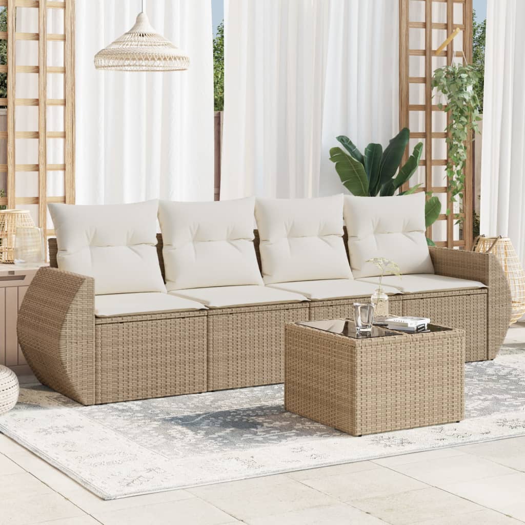 Diese Garten-Sofagarnitur ist die perfekte Ergänzung zu deinem Garten, deiner Terrasse oder deinem Innenhof. Sie bietet einen bequemen und einladenden Platz, um mit Familie und Freunden zu plaudern oder dich einfach nur zu entspannen und das Leben im Freien zu genießen. Langlebiges Material: PE-Rattan, auch als Poly Rattan bekannt, ist ein robustes, pflegeleichtes synthetisches Material, das die Optik von natürlichem Rattan aufweist. Es kennzeichnet sich durch ein geringes Eigengewicht und lässt sich einfach reinigen. Aufgrund seiner Haltbarkeit und Witterungsbeständigkeit wird es häufig bei der Herstellung von Gartenmöbeln verwendet.Stauraum mit wasserfestem Beutel: Jedes Gartensofa verfügt über ein Staufach unter der Sitzfläche, das mit einem wasserfesten Beutel zur Aufbewahrung von Kissen, Spielzeug und anderen Gegenständen versehen ist. Die Kissen sind mit Bezügen versehen und lassen sich mit Klettverschlüssen fest und sicher an den Sofas befestigen.Tischplatte aus Glas: Die Tischplatte des Gartentisches besteht aus starkem und langlebigem Hartglas, sodass sie leicht mit einem feuchten Tuch gereinigt werden kann und deinem Außenbereich einen Hauch von Eleganz verleiht.Abnehmbarer und waschbarer Bezug: Diese Sitzkissen verfügen über abnehmbare Bezüge für einfaches Waschen und Pflegen.Modulares Design: Dank des modularen Designs lassen sich die Gartenmöbel völlig flexibel und einfach umstellen, um deinen Außenbereich ganz individuell zu gestalten. Gut zu wissen:Wir empfehlen dir, deine Gartenmöbel mit einer wasserdichten Hülle zu schützen, um lange Zeit eine ansprechende Optik aufzuweisen.