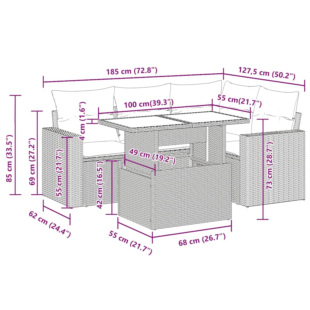 Diese Garten-Sofagarnitur ist die perfekte Ergänzung zu deinem Garten, deiner Terrasse oder deinem Innenhof. Sie bietet einen bequemen und einladenden Platz, um mit Familie und Freunden zu plaudern oder dich einfach nur zu entspannen und das Leben im Freien zu genießen.Langlebiges Material: PE-Rattan, auch als Poly Rattan bekannt, ist ein robustes, pflegeleichtes synthetisches Material, das die Optik von natürlichem Rattan aufweist. Es kennzeichnet sich durch ein geringes Eigengewicht und lässt sich einfach reinigen. Aufgrund seiner Haltbarkeit und Witterungsbeständigkeit wird es häufig bei der Herstellung von Gartenmöbeln verwendet.Stauraum mit wasserfestem Beutel: Jedes Gartensofa verfügt über ein Staufach unter der Sitzfläche, das mit einem wasserfesten Beutel zur Aufbewahrung von Kissen, Spielzeug und anderen Gegenständen versehen ist. Die Kissen sind mit Bezügen versehen und lassen sich mit Klettverschlüssen fest und sicher an den Sofas befestigen.Abnehmbarer und waschbarer Bezug: Diese Sitzkissen verfügen über abnehmbare Bezüge für einfaches Waschen und Pflegen.Modulares Design: Dank des modularen Designs lassen sich die Gartenmöbel völlig flexibel und einfach umstellen, um deinen Außenbereich ganz individuell zu gestalten.Gut zu wissen:Wir empfehlen dir, deine Gartenmöbel mit einer wasserdichten Hülle zu schützen, um lange Zeit eine ansprechende Optik aufzuweisen.