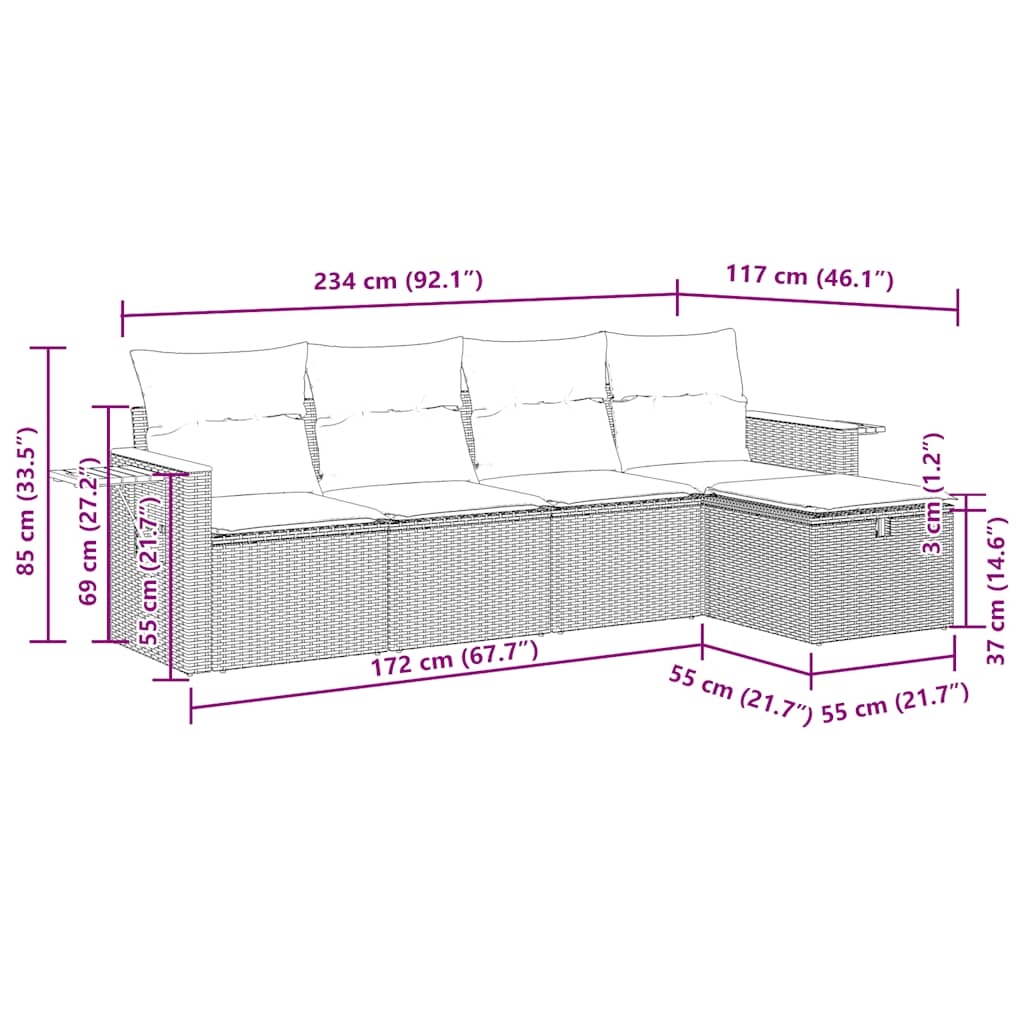 Diese Garten-Sofagarnitur ist die perfekte Ergänzung zu deinem Garten, deiner Terrasse oder deinem Innenhof. Sie bietet einen bequemen und einladenden Platz, um mit Familie und Freunden zu plaudern oder dich einfach nur zu entspannen und das Leben im Freien zu genießen. Langlebiges Material: PE-Rattan, auch als Poly Rattan bekannt, ist ein robustes, pflegeleichtes synthetisches Material, das die Optik von natürlichem Rattan aufweist. Es kennzeichnet sich durch ein geringes Eigengewicht und lässt sich einfach reinigen. Aufgrund seiner Haltbarkeit und Witterungsbeständigkeit wird es häufig bei der Herstellung von Gartenmöbeln verwendet.Stauraum mit wasserfestem Beutel: Jedes Gartensofa verfügt über ein Staufach unter der Sitzfläche, das mit einem wasserfesten Beutel zur Aufbewahrung von Kissen, Spielzeug und anderen Gegenständen versehen ist. Die Kissen sind mit Bezügen versehen und lassen sich mit Klettverschlüssen fest und sicher am Sofa befestigen.Vielseitiger Fußhocker: Der Hocker ist vielseitig einsetzbar und dient als bequeme Fußstütze beim Entspannen auf dem Sofa oder als zusätzlicher Sitzplatz in deinem Garten.Abnehmbarer und waschbarer Bezug: Diese Sitzkissen verfügen über abnehmbare Bezüge für einfaches Waschen und Pflegen.Robustes und stabiles Gestell: Der pulverbeschichtete Stahlgestell ist stark, stabil, langlebig sowie korrosions- und wetterbeständig, um eine lang anhaltende Leistung zu gewährleisten. Gut zu wissen:Wir empfehlen dir, deine Gartenmöbel mit einer wasserdichten Hülle zu schützen, um lange Zeit eine ansprechende Optik aufzuweisen.