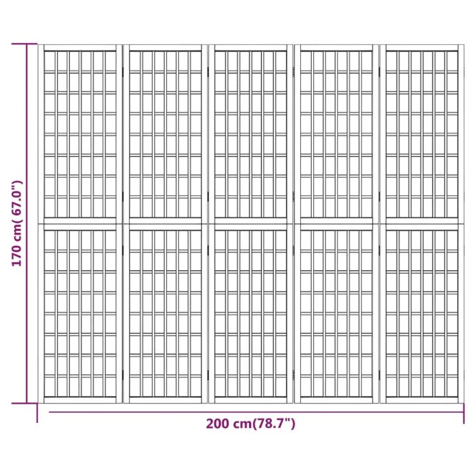 5-tlg. Paravent Japanischer Stil Faltbar 200x170 cm