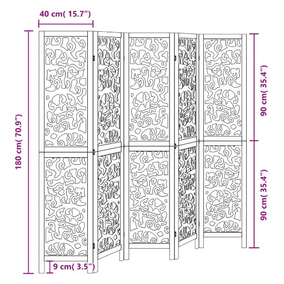 Verleihe deinem Wohnraum eine auffällige dekorative Note mit diesem bezaubernden Raumteiler. Langlebig und leicht zu reinigen: Der Sichtschutz ist aus Paulownia-Massivholz und Holzwerkstoff gefertigt, wodurch er pflegeleicht und strapazierfähig ist.Robuster Rahmen: Der Rahmen aus massivem Paulownia-Holz sorgt für Robustheit und Stabilität. Paulownia-Massivholz ist ein wunderschönes Naturmaterial. Paulowniaholz ist widerstandsfähig gegen Schädlingsbefall und Verrottung.Flexibel und einfach faltbar: Die Paravent-Teile sind jeweils durch 3 Metallscharniere miteinander verbunden. Die oberen und unteren Paneele dieser spanischen Wand sind durch verborgene 2-in-1-Scharniere verbunden. Der Raumtrenner kann also leicht bis zu einem gewissen Grad zusammengeklappt werden; dadurch spart er bei Nichtgebrauch Platz.Vielseitig einsetzbar: Die Trennwand eignet sich hervorragend zur Schaffung von Privatsphäre im Schlafzimmer, Wohnzimmer, Büro und anderen Räumen. Du kannst das Paravent auch vor ein Fenster stellen, um intensives Sonnenlicht abzuschirmen.Attraktiver Look: Mit seinem filigranen Muster verleiht diese faltbare Trennwand jedem Raum mehr Charakter. Achtung:Nur für den Innenbereich!