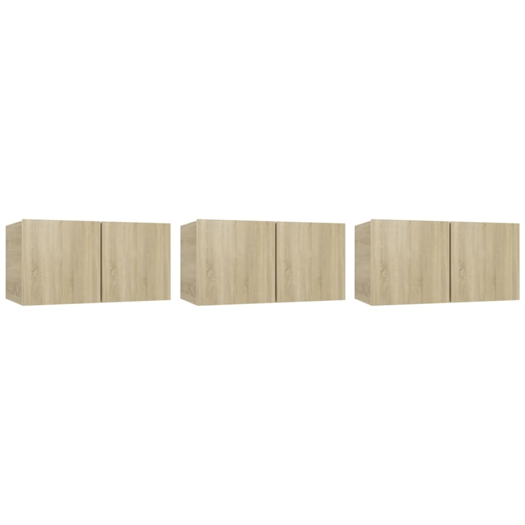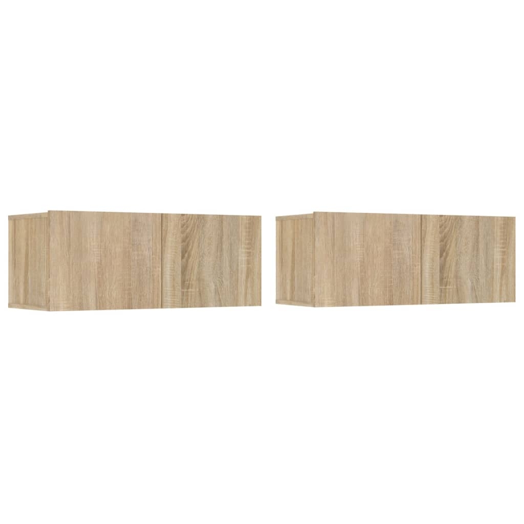 Dieses klassische TV-Schrank-Set wird mit seinem trendigen und dennoch praktischen Design zum Mittelpunkt deines Wohnzimmers. Robustes Material: Holzwerkstoff ist ein Material hoher Qualität mit glatter Oberfläche, das sich durch Festigkeit, Stabilität und Feuchtigkeitsbeständigkeit auszeichnet. Aus Holzwerkstoff gefertigt, lässt sich dieser TV-Schrank einfach reinigen.Viel Stauraum: Diese TV-Schränke bieten viel Stauraum, um all deine Zeitschriften, DVDs und andere Gegenstände gut organisiert aufzubewahren.Wandmontage: Der Medienschrank nimmt keine Bodenfläche ein. Er lässt sich einfach an der Wand befestigen.Praktische Türen: Schütze deine wichtigsten Sachen vor Staub, indem du sie hinter der Tür in dieser Medieneinheit verstaust. Hinweis:Schrauben und Dübel für die Wandbefestigung sind nicht enthalten. Suchen und verwenden Sie die für Ihre Wände geeigneten Schrauben und Dübel. Wenn Sie unsicher sind, suchen Sie professionelle Hilfe. Lesen und befolgen Sie jeden Schritt der Anleitung sorgfältig.Jedes Produkt wird mit einer Montageanleitung in der Verpackung für eine einfache Montage geliefert.