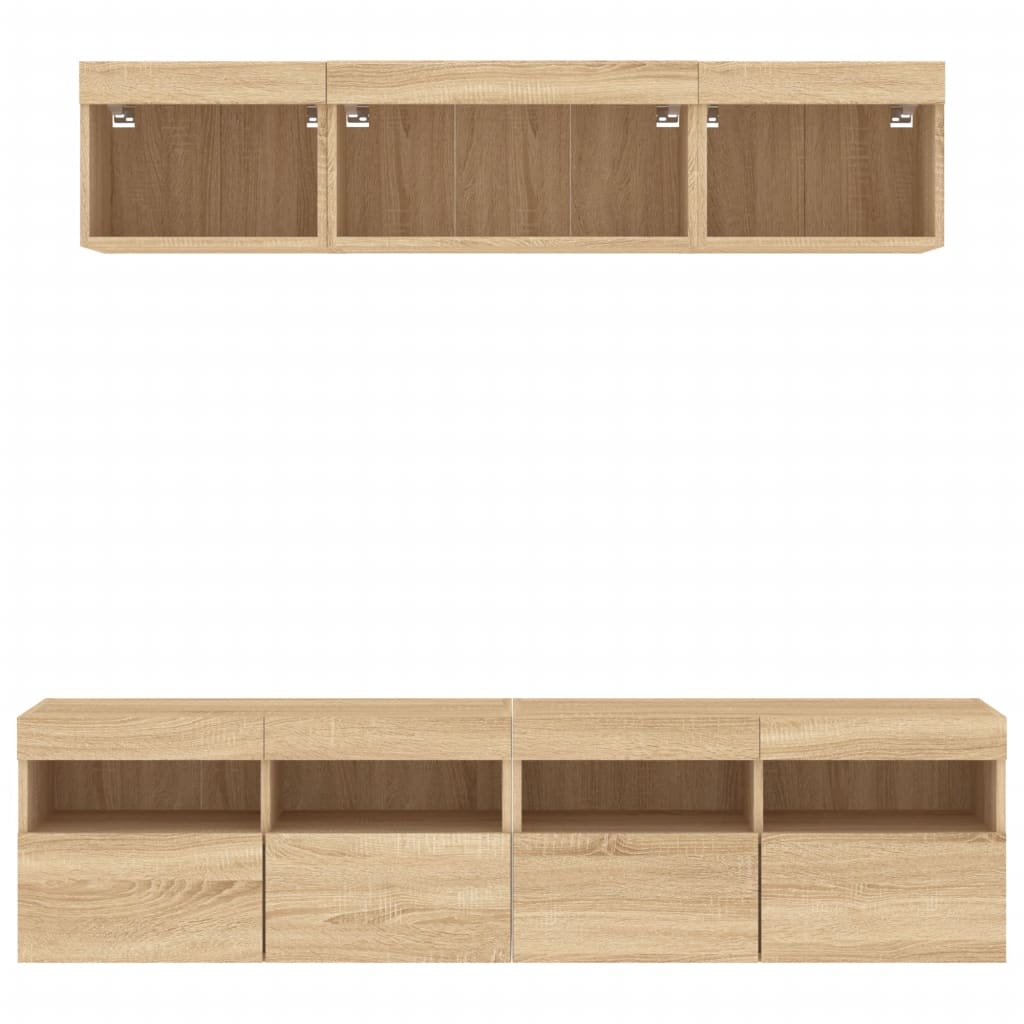 Diese TV-Wandschränke bieten eine perfekte Lösung, um zusätzlichen Stauraum in deinem Wohnraum zu schaffen und für Ordnung zu sorgen. Robustes Material: Holzwerkstoff ist ein Material von außergewöhnlicher Qualität mit glatter Oberfläche, das sich durch Festigkeit, Stabilität und Feuchtigkeitsbeständigkeit auszeichnet.RGB-LED-Leuchten: Die Wohnwand ist mit lebendigen RGB-LED-Leuchten ausgestattet. Mit verschiedenen anpassbaren Menüs kannst du die Farbe der Lichter mühelos wechseln und sie sogar auf automatische Anpassung einstellen. Diese LED-Leuchten unterstreichen nicht nur den modernen Look des TV-Wandschranks, sondern tragen auch zu seiner trendigen Optik bei.Wandmontage: Der TV-Schrank lässt sich an der Wand montieren, um zusätzlichen Stauraum zu schaffen. Auf diese Weise kannst du deine Bodenfläche maximieren und für Ordnung im Raum sorgen.Reichlich Stauraum: Das TV-Wandschrank-Set bietet reichlich Platz, um Bücher, DVDs, Zeitschriften, Medien und andere Alltagsgegenstände übersichtlich und griffbereit zu verstauen.Vielseitiges Design: Du kannst den Schrank als TV-Schrank verwenden oder ihn im Arbeitszimmer an der Wand montieren, um Utensilien oder andere Gegenstände bequem aufzubewahren. Zudem verwandelt er eine leere Wand sofort in ein Design-Element. Gut zu wissen:Schrauben und Dübel für die Innenseite der Wand sind nicht enthalten. Wir empfehlen dir, Schrauben und Dübel zu finden und zu verwenden, die speziell für deine Wände geeignet sind. Wenn du dir nicht sicher bist, kannst du dich an einen Fachmann wenden. Bitte lies und befolge jeden Schritt in der Anleitung.Das Produkt verfügt über einen USB-Anschluss, für den eine zertifizierte 5V-USB-Stromquelle erforderlich ist (nicht im Lieferumfang enthalten).