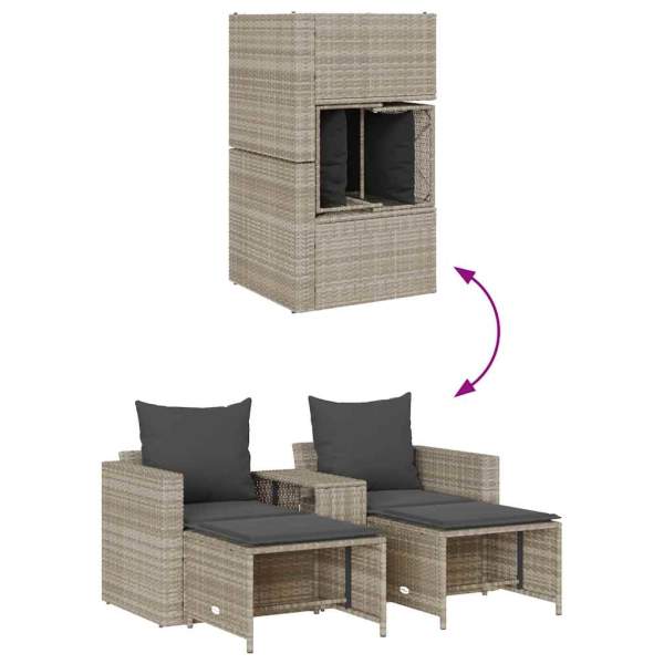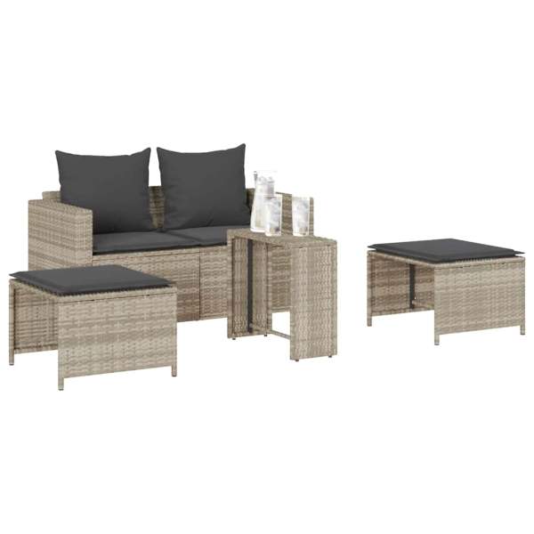 Diese Garten-Sofagarnitur ist die perfekte Ergänzung zu deinem Garten, deiner Terrasse oder deinem Innenhof. Sie bietet einen bequemen und einladenden Platz, um mit Familie und Freunden zu plaudern oder dich einfach nur zu entspannen und das Leben im Freien zu genießen. Langlebiges Material: PE-Rattan, auch als Poly Rattan bekannt, ist ein robustes, pflegeleichtes synthetisches Material, das die Optik von natürlichem Rattan aufweist. Es kennzeichnet sich durch ein geringes Eigengewicht und lässt sich einfach reinigen. Aufgrund seiner Haltbarkeit und Witterungsbeständigkeit wird es häufig bei der Herstellung von Gartenmöbeln verwendet.Bequemes Sitzerlebnis: Dieser Gartensessel mit dick gepolsterten Kissen bietet ein angenehmes Sitzgefühl.Abnehmbarer und waschbarer Bezug: Diese Sitzkissen verfügen über abnehmbare Bezüge für einfaches Waschen und Pflegen.Stapelbar und platzsparend: Diese Garten-Sofagarnitur lässt sich bequem zu einer kompakten rechteckigen Struktur stapeln. Dadurch lässt es sich leicht verstauen und ist ideal, um den Platz bei Nichtgebrauch optimal zu nutzen.Modulares Design: Dank des modularen Designs lassen sich die Gartenmöbel völlig flexibel und einfach umstellen, um deinen Außenbereich ganz individuell zu gestalten. Gut zu wissen:Wir empfehlen dir, deine Gartenmöbel mit einer wasserdichten Hülle zu schützen, um lange Zeit eine ansprechende Optik aufzuweisen.