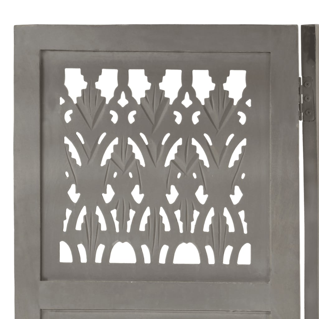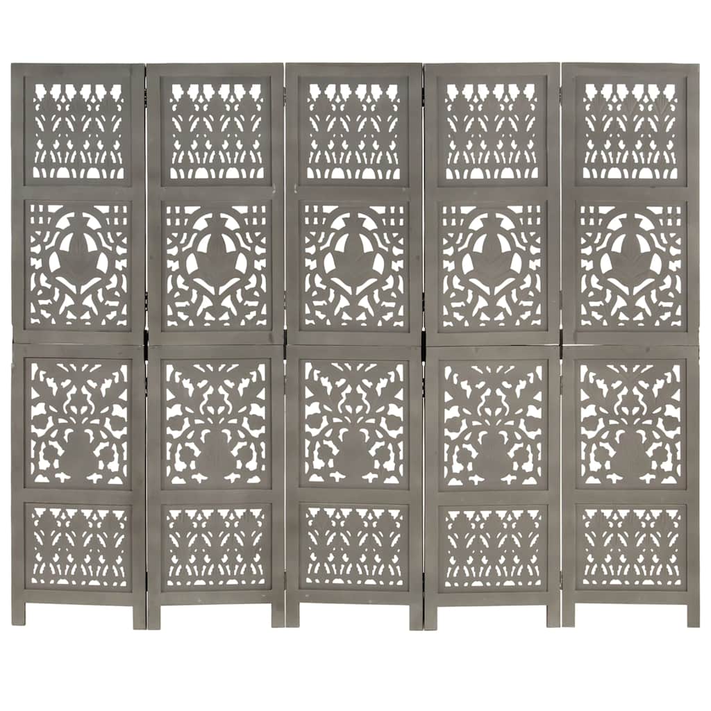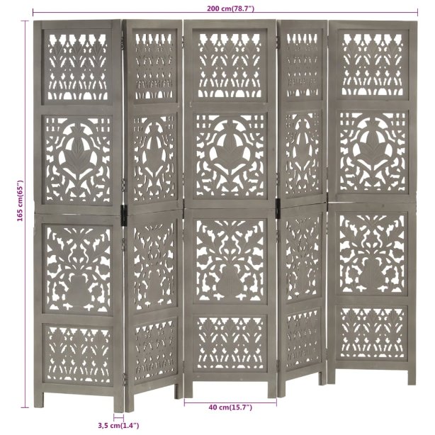 5tlg. Raumteiler Handgeschnitzt Grau 200×165cm Mango Massivholz