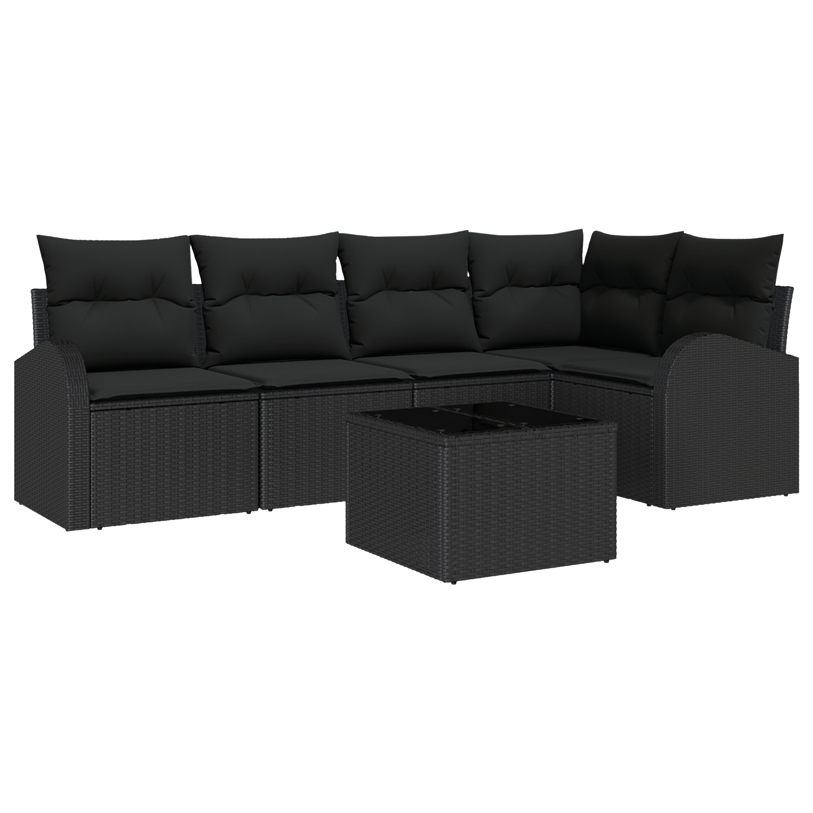 Dieses tolle Garten-Ecksofa-Set hebt den Komfort im Freien auf ein neues Level mit seinem großzügigen Design und dem stylischen Look. Es hat gemütliche Schaumkissen und ein schickes, gewebtes synthetisches Rattan, was es zum perfekten Chillplatz für deine Outdoor-Treffen macht – ideal zum Feiern mit Freunden oder einfach zum Entspannen in der Sonne. Wasserabweisendes Material: Die Kissen sind aus hochwertigem Polyester für Komfort und wetterfest. Viel Platz: Platz für 5 Leute – ideal für Familie und Freunde. Schlichtes schwarzes Design: Das schicke schwarze Finish bringt einen edlen Touch in jeden Außenbereich. Pflegeleichte Handhabung: Die Kissenbezüge lassen sich zum einfachen Reinigen abziehen. Robuste Bauweise: Hergestellt mit einem stabilen Metallrahmen und wetterfestem Poly-Rattan für eine langlebige Stabilität.