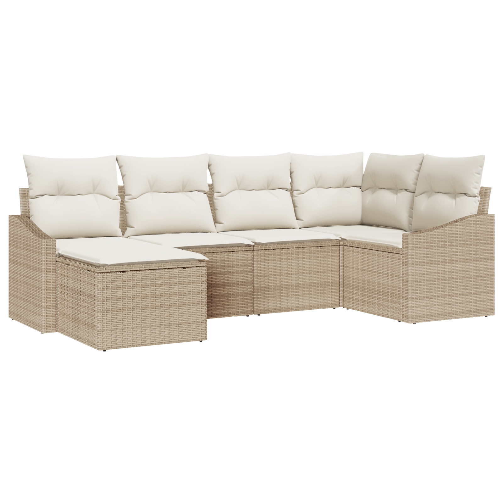 Dieses Outdoor Ecksofa Set ist eine klasse Ergänzung für jede Terrasse oder jeden Garten. Es verbindet Funktionalität mit modernem Look. Das robuste, beige Poly Rattan fügt sich super in verschiedene Außenbereiche ein und bietet einen bequemen Platz zum Entspannen mit Familie und Freunden. Vielseitiges modulares Design: Du kannst das Sofa Set ganz einfach umstellen, um es für verschiedene Anlässe anzupassen – perfekt für kleine oder große Räume. Wetterfestes Material: Die Bauweise aus Poly Rattan hält den Outdoor-Bedingungen stand und sorgt dafür, dass deine Möbel lange gut aussehen. Bequeme Kissen: Jedes Stück hat superweiche Kissen, ideal zum Relaxen – egal, ob du eine Sommerparty schmeißt oder einfach nur einen ruhigen Moment draußen genießen willst. Die Bezüge sind abnehmbar, so dass du sie einfach waschen kannst. Stylischer Look: Die schicke beige Ausführung und die cremefarbenen Kissen geben diesem Ecksofa einen modernen Touch und machen deinen Außenbereich zu einem stylischen Rückzugsort. Platz für alle: Mit Platz für bis zu fünf Personen ist es perfekt, um Freunde und Familie im Freien einladen zu können.