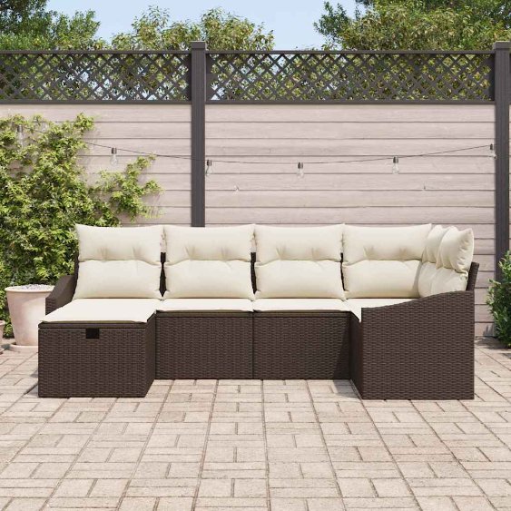 Mit diesem Outdoor Ecksofa Set bekommst du Komfort und Stil zugleich. Es ist eine super Wahl für Balkone und Gärten. Das moderne Design mit der tollen beige-braunen Farbkombination macht deinen Außenbereich lebendiger und sorgt für eine angenehme Atmosphäre bei Familientreffen oder entspannten Abenden mit Freunden. Geräumige Sitzgelegenheit: Genug Platz für Familie und Freunde – bequem für bis zu 5 Personen zum Essen oder Relaxen im Freien. Stauraum: Jeder Sitz hat versteckten Stauraum, perfekt für Kissen und andere Utensilien, richtig praktisch für den Alltag. Stylisches Design: Der moderne Look mit robustem Rattan und bequemen Kissen zieht alle Blicke in deinem Außenbereich an. Wetterfest: Das UV-beständige Rattanmaterial sorgt dafür, dass es sonnige Tage ohne Verblassen oder Abnutzung übersteht. Vielseitige Anordnung: Das modulare Design erlaubt dir, es nach Lust und Laune zu gestalten – ideal für dein persönliches Outdoor-Sitzlayout.